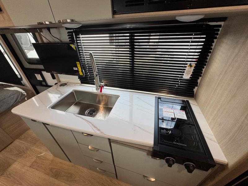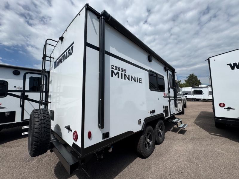 Start out on your boundless journey in one of these Winnebago Micro Minnie travel trailers! Towing is made simple with the 7' width to keep your Micro Minnie in your rear-view mirror. They don't lack in features either although they are compact in size. The spacious galley including a sink, refrigerator, a cooktop, and even a convection microwave oven allows you to cook without compromise. You will not only enjoy the entertainment found indoors with a Smart TV, a JBL premium sound system and Aura Cube high performance mechless media center, but outdoors you will also enjoy the JBL premium speakers and a power awning with LED lighting. Each model also comes with flexible exterior storage to make packing quick and easy, a 200-watt solar panel for off-grid camping, and Dexter TORFLEX torsion stub axles for smooth towing!