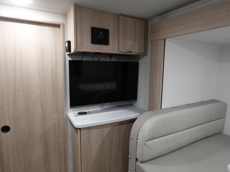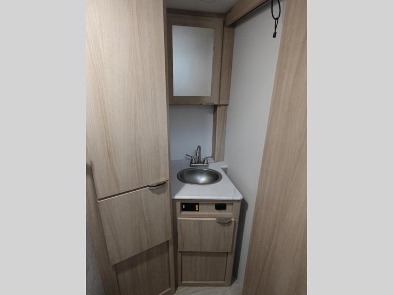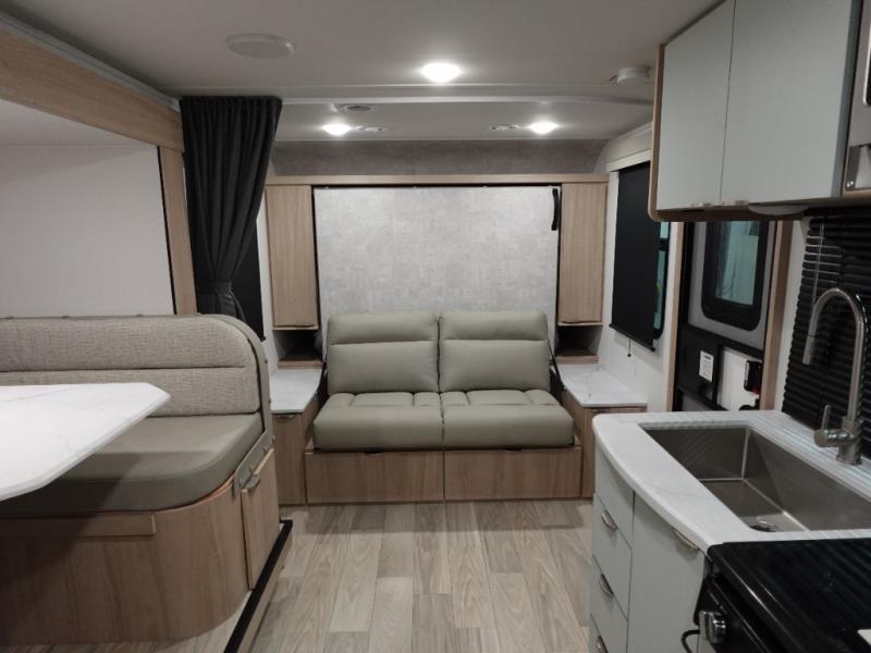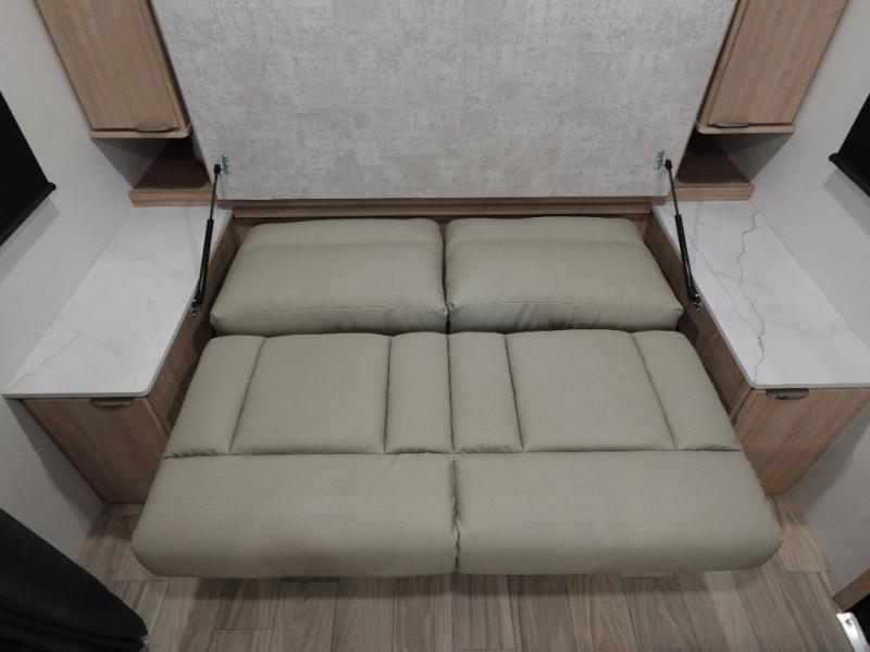 If you're looking for versatility then you need this travel trailer! Depending on the time of day you enter will determine whether you see the Murphy bed or the sofa up front. A slide out 44" x 72" booth dinette can be used for dining, playing games, and sleeping space at night. The full rear bathroom is equipped with everything you will need to freshen up each morning and features a wardrobe for your clothing and linens, and a pocket door into the bath saves space in the main room. The Smart TV is conveniently located so you can watch your favorite shows from the sofa or Murphy bed as well as the dinette, plus the pantry offers a place to store your snacks and such for easy access. The cook in your bunch will love all the amenities to make meals including the handy flip-up counter for more prep space.