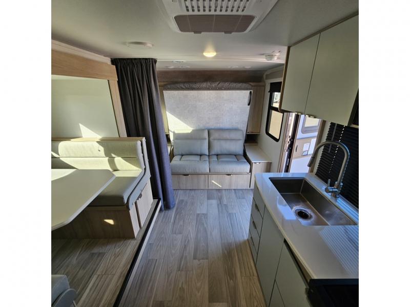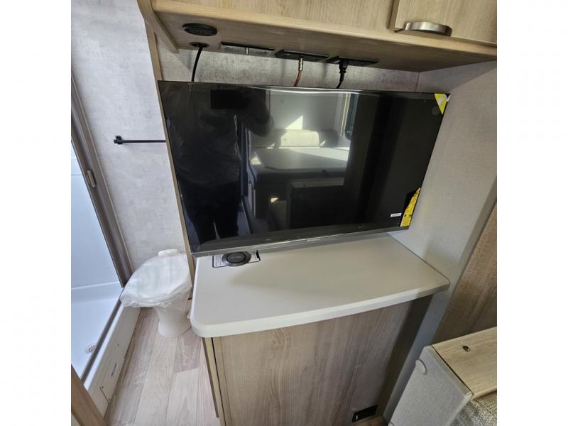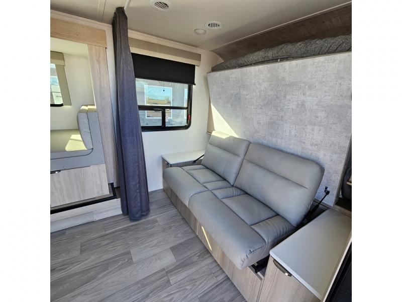 If you're looking for versatility then you need this travel trailer! Depending on the time of day you enter will determine whether you see the Murphy bed or the sofa up front. A slide out 44" x 72" booth dinette can be used for dining, playing games, and sleeping space at night. The full rear bathroom is equipped with everything you will need to freshen up each morning and features a wardrobe for your clothing and linens, and a pocket door into the bath saves space in the main room. The Smart TV is conveniently located so you can watch your favorite shows from the sofa or Murphy bed as well as the dinette, plus the pantry offers a place to store your snacks and such for easy access. The cook in your bunch will love all the amenities to make meals including the handy flip-up counter for more prep space.