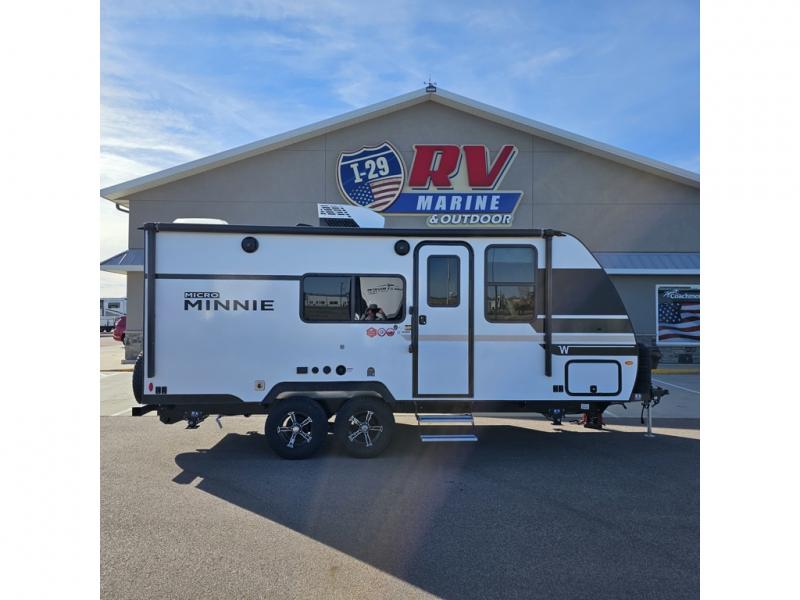 Start out on your boundless journey in one of these Winnebago Micro Minnie travel trailers! Towing is made simple with the 7' width to keep your Micro Minnie in your rear-view mirror. They don't lack in features either although they are compact in size. The spacious galley including a sink, refrigerator, a cooktop, and even a convection microwave oven allows you to cook without compromise. You will not only enjoy the entertainment found indoors with a Smart TV, a JBL premium sound system and Aura Cube high performance mechless media center, but outdoors you will also enjoy the JBL premium speakers and a power awning with LED lighting. Each model also comes with flexible exterior storage to make packing quick and easy, a 200-watt solar panel for off-grid camping, and Dexter TORFLEX torsion stub axles for smooth towing!