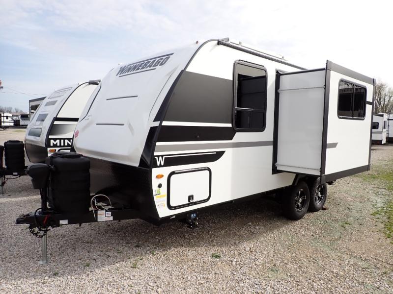 Start out on your boundless journey in one of these Winnebago Micro Minnie travel trailers! Towing is made simple with the 7' width to keep your Micro Minnie in your rear-view mirror. They don't lack in features either although they are compact in size. The spacious galley including a sink, refrigerator, a cooktop, and even a convection microwave oven allows you to cook without compromise. You will not only enjoy the entertainment found indoors with a Smart TV, a JBL premium sound system and Aura Cube high performance mechless media center, but outdoors you will also enjoy the JBL premium speakers and a power awning with LED lighting. Each model also comes with flexible exterior storage to make packing quick and easy, a 200-watt solar panel for off-grid camping, and Dexter TORFLEX torsion stub axles for smooth towing!