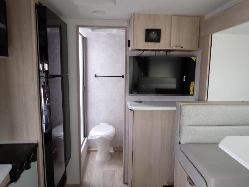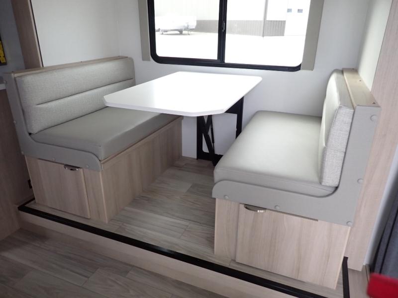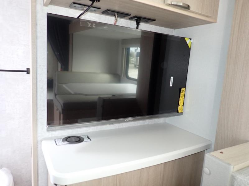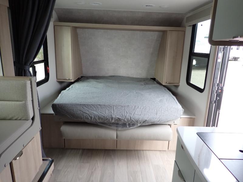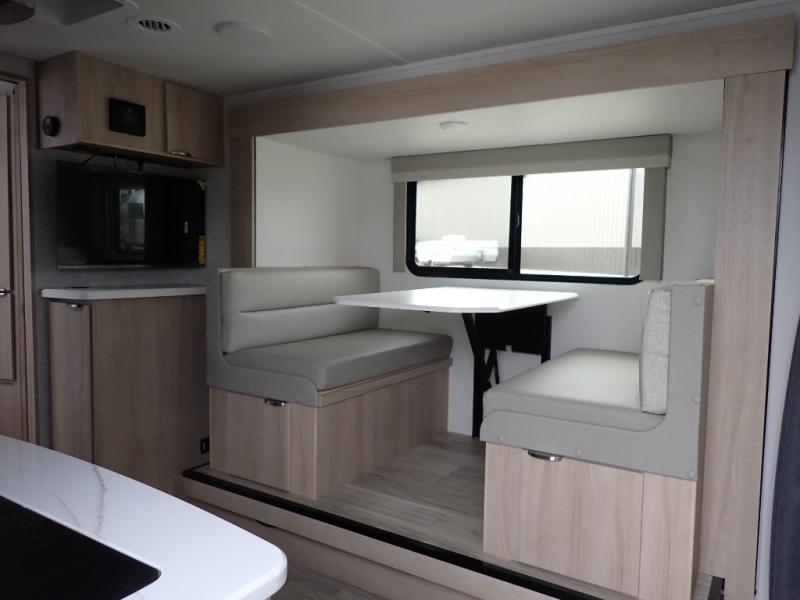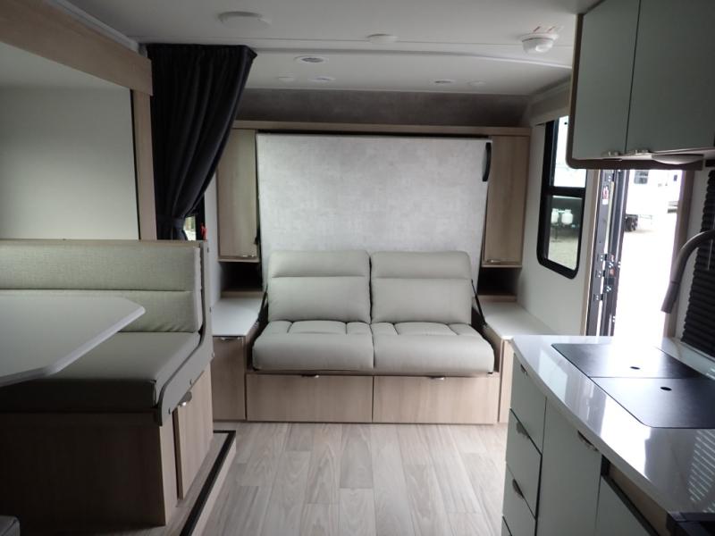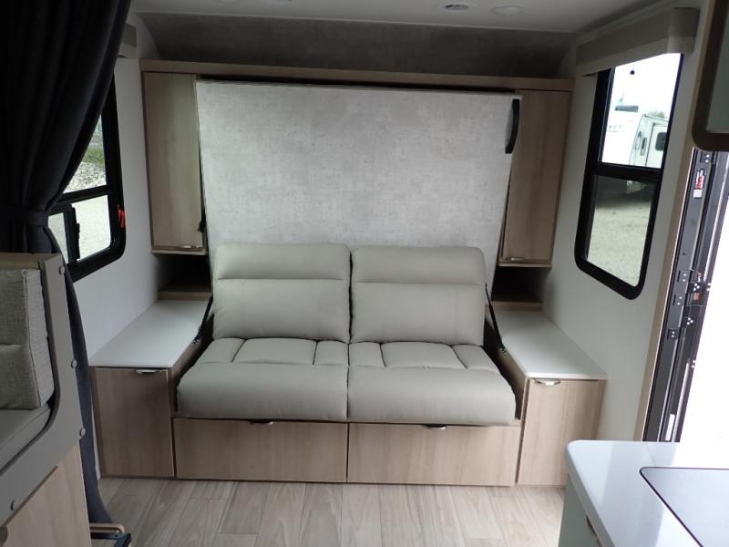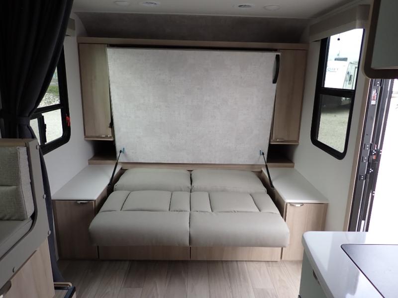 If you're looking for versatility then you need this travel trailer! Depending on the time of day you enter will determine whether you see the Murphy bed or the sofa up front. A slide out 44" x 72" booth dinette can be used for dining, playing games, and sleeping space at night. The full rear bathroom is equipped with everything you will need to freshen up each morning and features a wardrobe for your clothing and linens, and a pocket door into the bath saves space in the main room. The Smart TV is conveniently located so you can watch your favorite shows from the sofa or Murphy bed as well as the dinette, plus the pantry offers a place to store your snacks and such for easy access. The cook in your bunch will love all the amenities to make meals including the handy flip-up counter for more prep space.