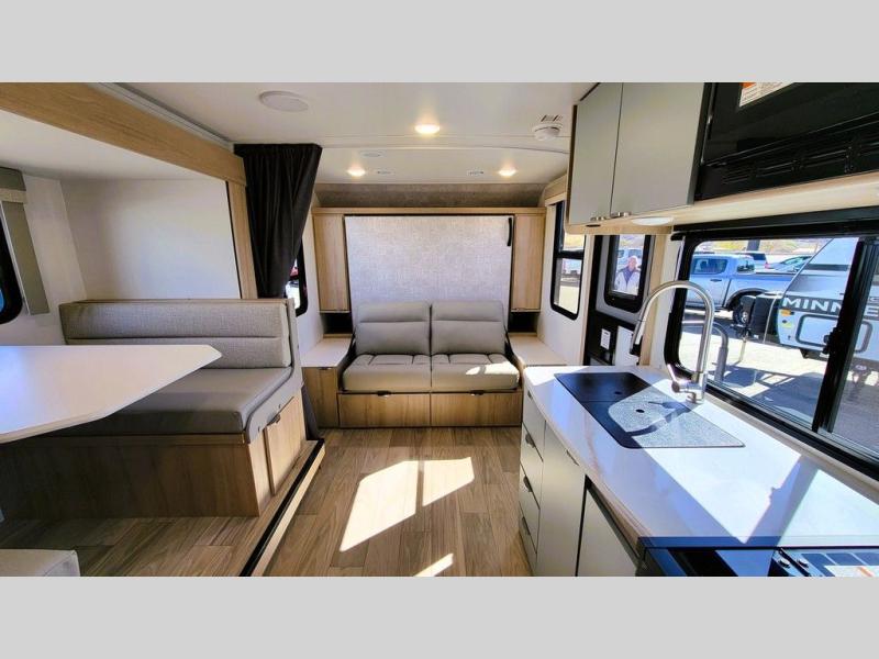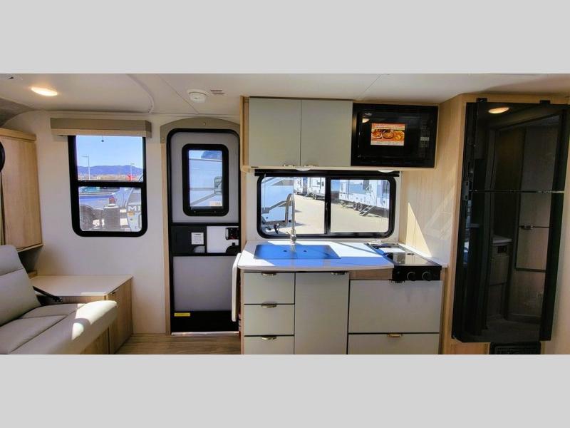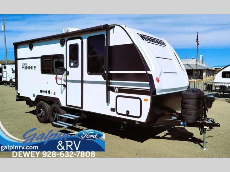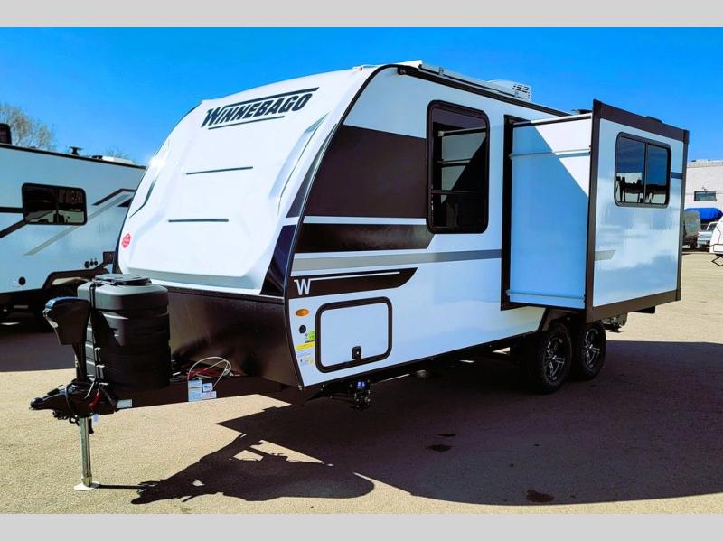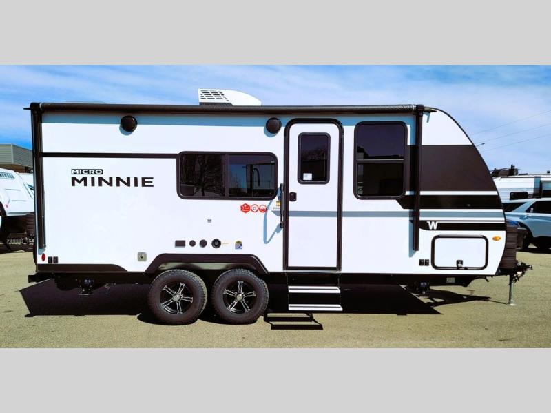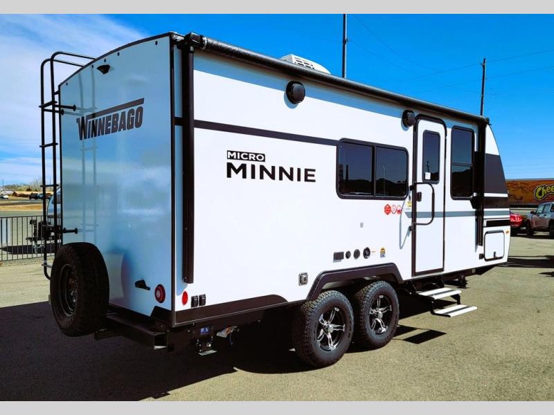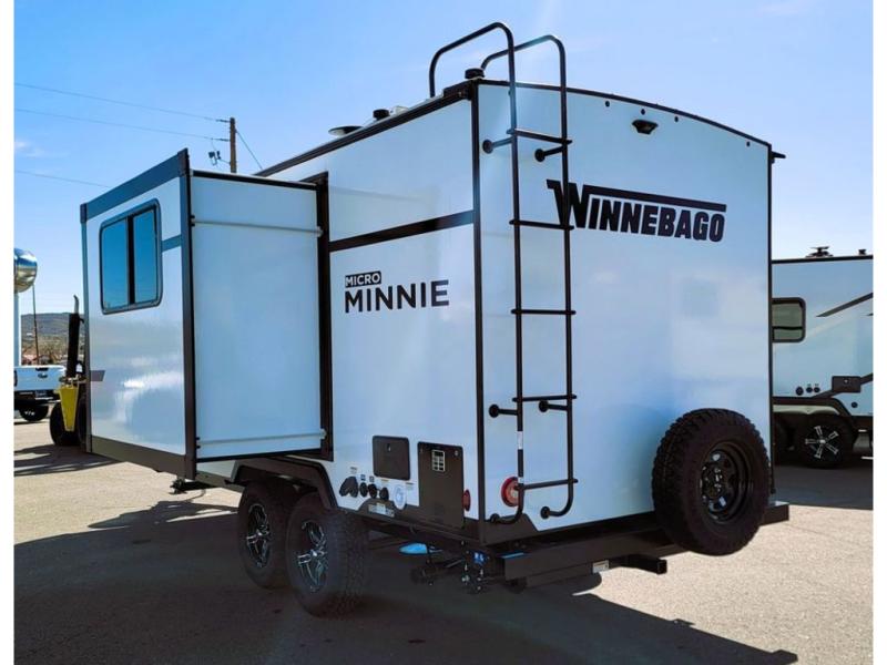 Start out on your boundless journey in one of these Winnebago Micro Minnie travel trailers! Towing is made simple with the 7' width to keep your Micro Minnie in your rear-view mirror. They don't lack in features either although they are compact in size. The spacious galley including a sink, refrigerator, a cooktop, and even a convection microwave oven allows you to cook without compromise. You will not only enjoy the entertainment found indoors with a Smart TV, a JBL premium sound system and Aura Cube high performance mechless media center, but outdoors you will also enjoy the JBL premium speakers and a power awning with LED lighting. Each model also comes with flexible exterior storage to make packing quick and easy, a 200-watt solar panel for off-grid camping, and Dexter TORFLEX torsion stub axles for smooth towing!