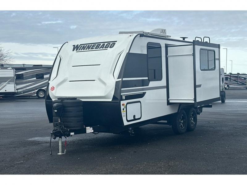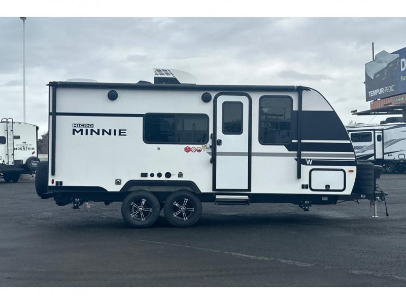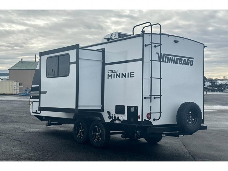 Start out on your boundless journey in one of these Winnebago Industries Towables Micro Minnie travel trailers! Towing is made simple with the 7' width to keep your Micro Minnie in your rear-view mirror. They don't lack in features either although they are compact in size. The spacious galley including a sink, refrigerator, a cooktop, and even a convection microwave oven allows you to cook without compromise. You will not only enjoy the entertainment found indoors with a Smart TV, a JBL premium sound system and Aura Cube high performance mechless media center, but outdoors you will also enjoy the JBL premium speakers and a power awning with LED lighting. Each model also comes with flexible exterior storage to make packing quick and easy, a 200-watt solar panel for off-grid camping, and Dexter TORFLEX torsion stub axles for smooth towing!