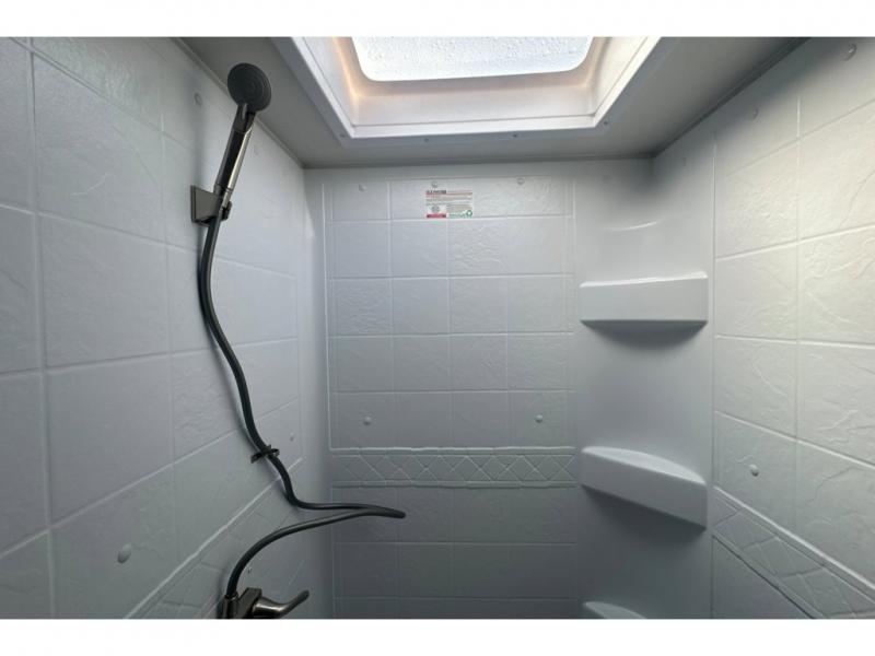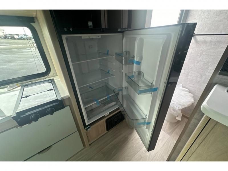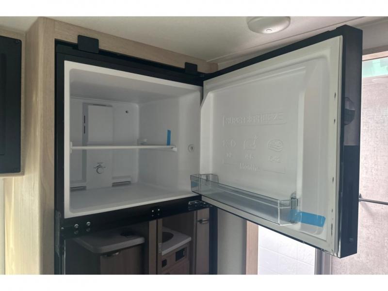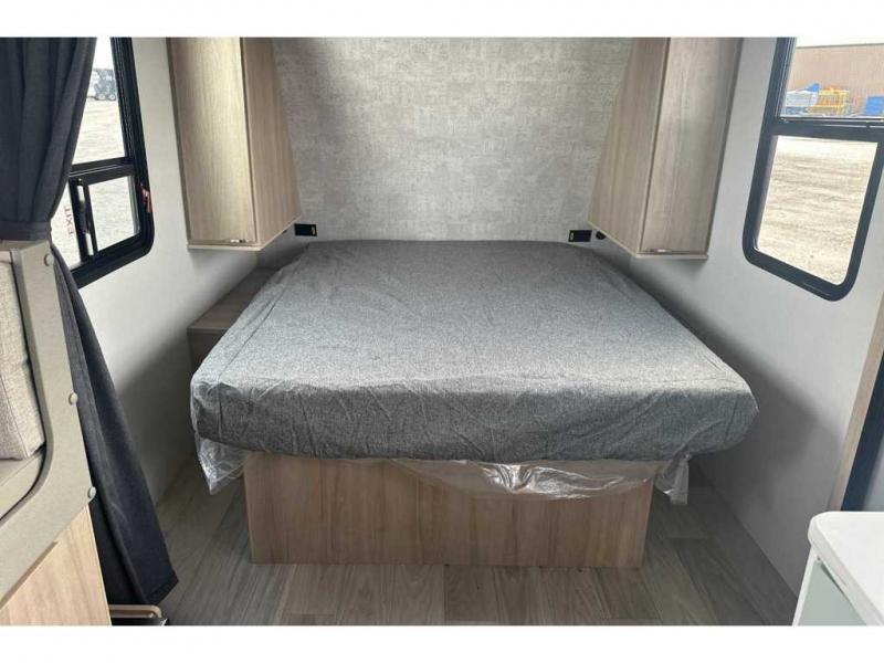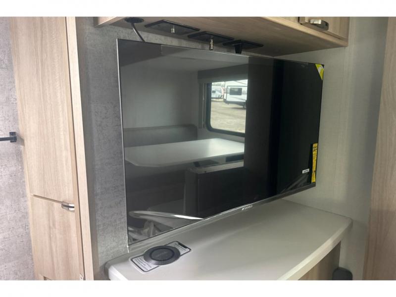Pack your bags and head to the campground with this travel trailer! You will love all that it has to offer from the full rear bathroom to the front 60" x 74" RV queen-size bed with dual wardrobes on either side of the bed. The 44" x 72" booth dinette slide is not only a great place to enjoy your meals at or play card games, but it can also be transformed into an extra sleeping space if you want to bring along a guest. When you don't feel like making dinner, you can easily pop in some leftovers or a bag of popcorn into the convection microwave and relax while you watch a movie on the Smart TV!