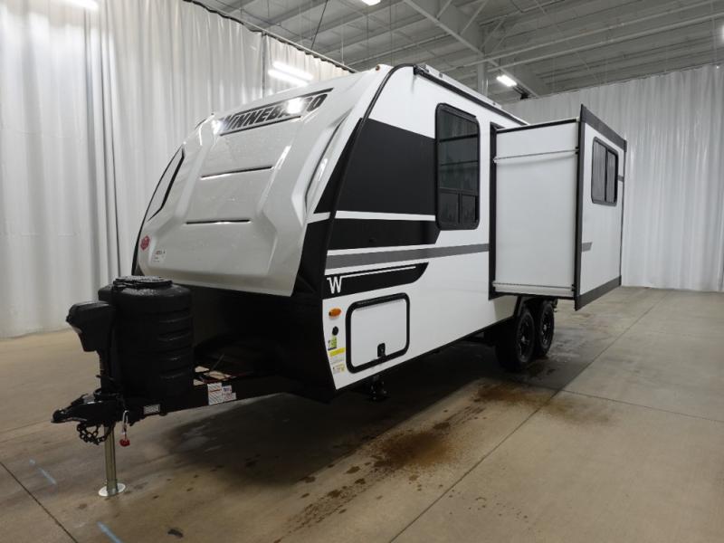 Start out on your boundless journey in one of these Winnebago Micro Minnie travel trailers! Towing is made simple with the 7' width to keep your Micro Minnie in your rear-view mirror. They don't lack in features either although they are compact in size. The spacious galley including a sink, refrigerator, a cooktop, and even a convection microwave oven allows you to cook without compromise. You will not only enjoy the entertainment found indoors with a Smart TV, a JBL premium sound system and Aura Cube high performance mechless media center, but outdoors you will also enjoy the JBL premium speakers and a power awning with LED lighting. Each model also comes with flexible exterior storage to make packing quick and easy, a 200-watt solar panel for off-grid camping, and Dexter TORFLEX torsion stub axles for smooth towing!