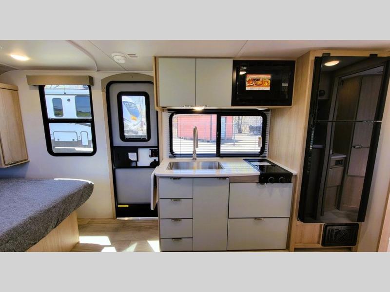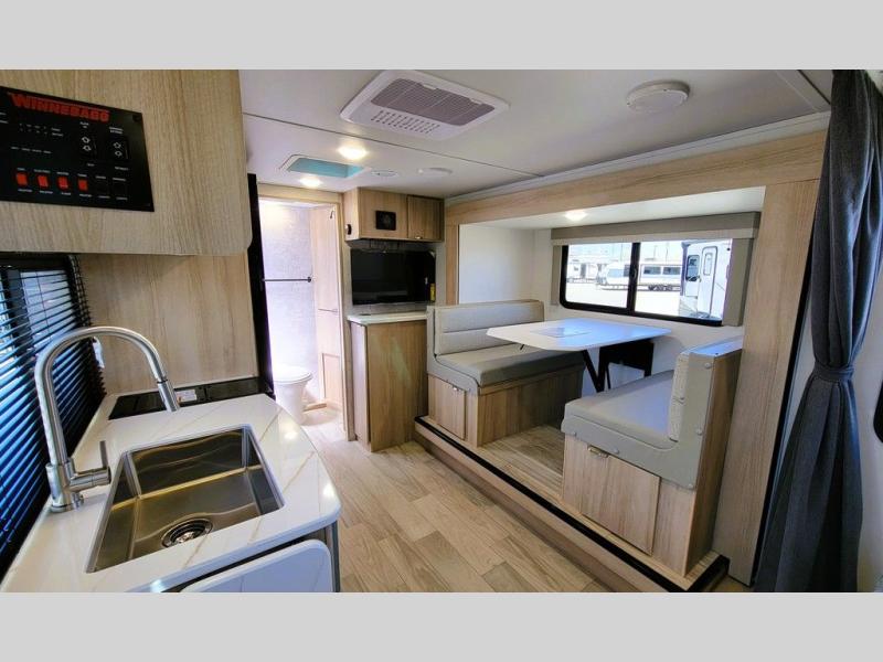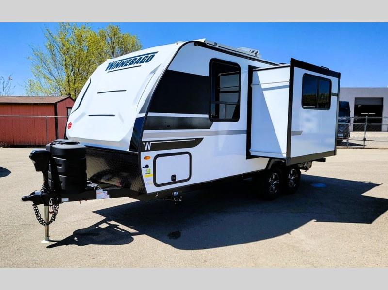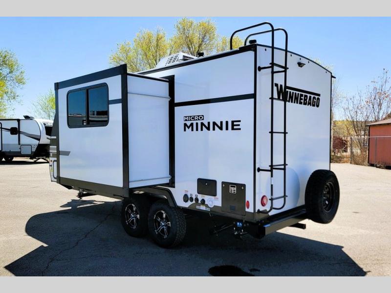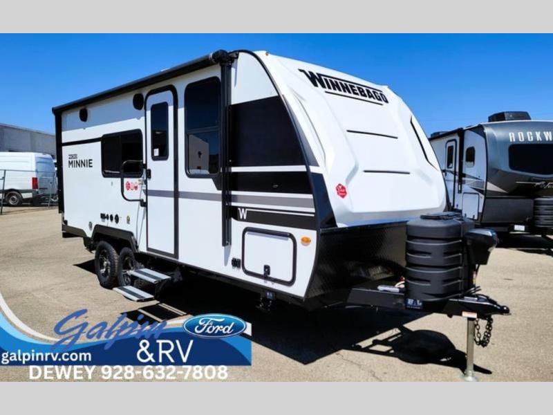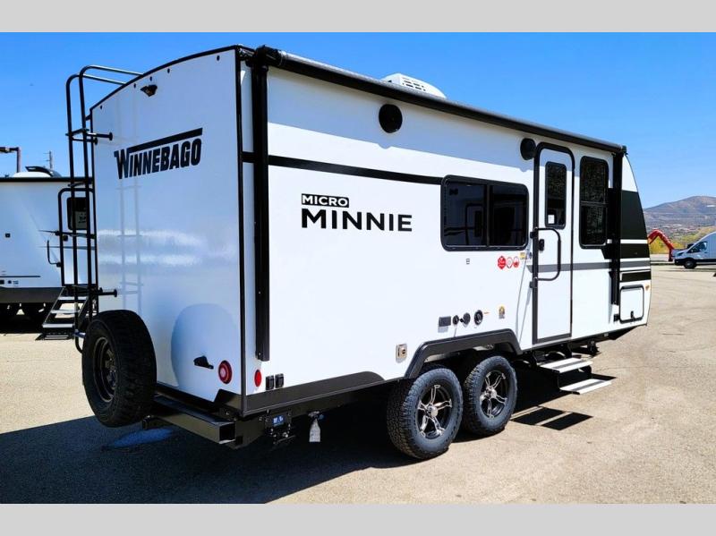 Start out on your boundless journey in one of these Winnebago Micro Minnie travel trailers! Towing is made simple with the 7' width to keep your Micro Minnie in your rear-view mirror. They don't lack in features either although they are compact in size. The spacious galley including a sink, refrigerator, a cooktop, and even a convection microwave oven allows you to cook without compromise. You will not only enjoy the entertainment found indoors with a Smart TV, a JBL premium sound system and Aura Cube high performance mechless media center, but outdoors you will also enjoy the JBL premium speakers and a power awning with LED lighting. Each model also comes with flexible exterior storage to make packing quick and easy, a 200-watt solar panel for off-grid camping, and Dexter TORFLEX torsion stub axles for smooth towing!