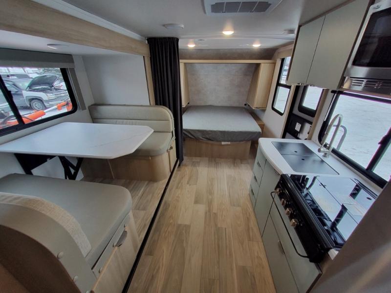 Start out on your boundless journey in one of these Winnebago Micro Minnie travel trailers! Towing is made simple with the 7' width to keep your Micro Minnie in your rear-view mirror. They don't lack in features either although they are compact in size. The spacious galley including a sink, refrigerator, a cooktop, and even a convection microwave oven allows you to cook without compromise. You will not only enjoy the entertainment found indoors with a Smart TV, a JBL premium sound system and Aura Cube high performance mechless media center, but outdoors you will also enjoy the JBL premium speakers and a power awning with LED lighting. Each model also comes with flexible exterior storage to make packing quick and easy, a 200-watt solar panel for off-grid camping, and Dexter TORFLEX torsion stub axles for smooth towing!