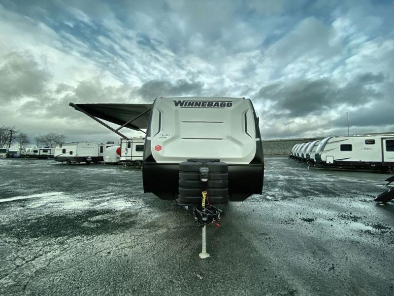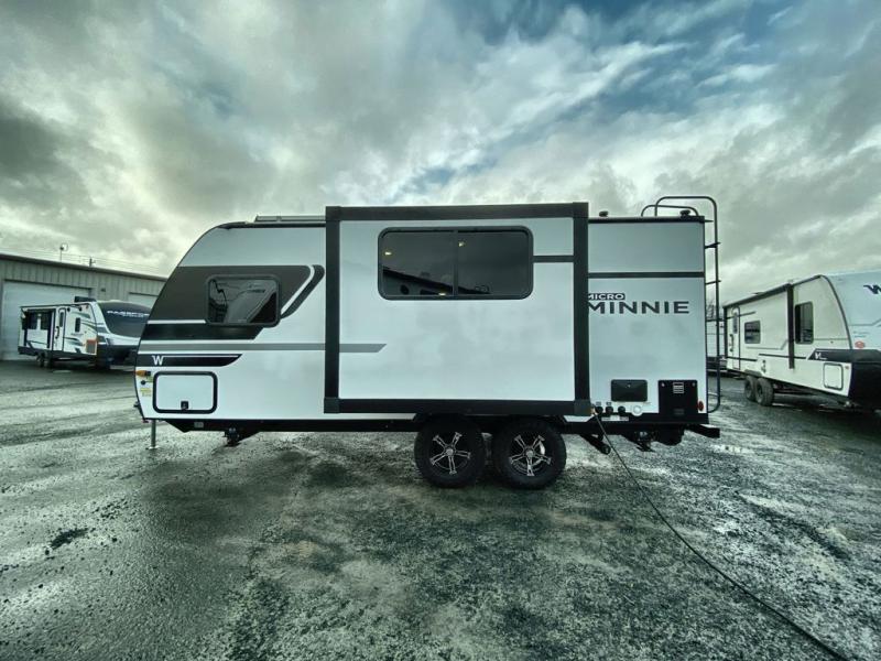 Start out on your boundless journey in one of these Winnebago Micro Minnie travel trailers! Towing is made simple with the 7' width to keep your Micro Minnie in your rear-view mirror. They don't lack in features either although they are compact in size. The spacious galley including a sink, refrigerator, a cooktop, and even a convection microwave oven allows you to cook without compromise. You will not only enjoy the entertainment found indoors with a Smart TV, a JBL premium sound system and Aura Cube high performance mechless media center, but outdoors you will also enjoy the JBL premium speakers and a power awning with LED lighting. Each model also comes with flexible exterior storage to make packing quick and easy, a 200-watt solar panel for off-grid camping, and Dexter TORFLEX torsion stub axles for smooth towing!