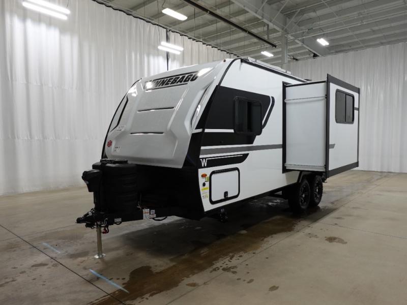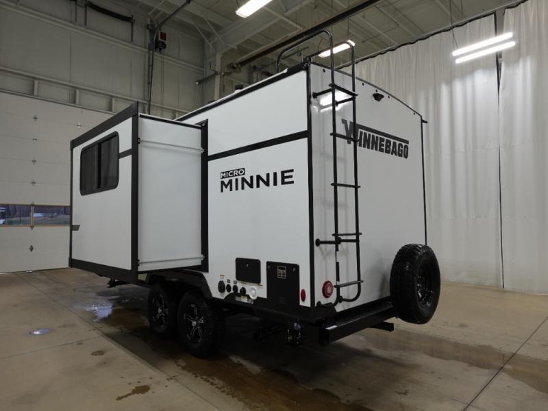 Start out on your boundless journey in one of these Winnebago Micro Minnie travel trailers! Towing is made simple with the 7' width to keep your Micro Minnie in your rear-view mirror. They don't lack in features either although they are compact in size. The spacious galley including a sink, refrigerator, a cooktop, and even a convection microwave oven allows you to cook without compromise. You will not only enjoy the entertainment found indoors with a Smart TV, a JBL premium sound system and Aura Cube high performance mechless media center, but outdoors you will also enjoy the JBL premium speakers and a power awning with LED lighting. Each model also comes with flexible exterior storage to make packing quick and easy, a 200-watt solar panel for off-grid camping, and Dexter TORFLEX torsion stub axles for smooth towing!