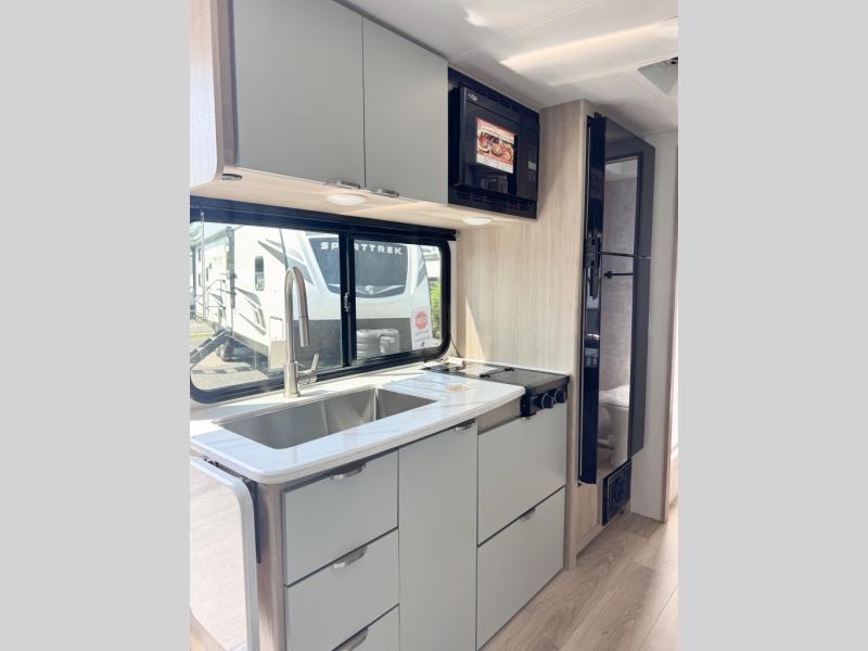 Start out on your boundless journey in one of these Winnebago Micro Minnie travel trailers! Towing is made simple with the 7' width to keep your Micro Minnie in your rear-view mirror. They don't lack in features either although they are compact in size. The spacious galley including a sink, refrigerator, a cooktop, and even a convection microwave oven allows you to cook without compromise. You will not only enjoy the entertainment found indoors with a Smart TV, a JBL premium sound system and Aura Cube high performance mechless media center, but outdoors you will also enjoy the JBL premium speakers and a power awning with LED lighting. Each model also comes with flexible exterior storage to make packing quick and easy, a 200-watt solar panel for off-grid camping, and Dexter TORFLEX torsion stub axles for smooth towing!