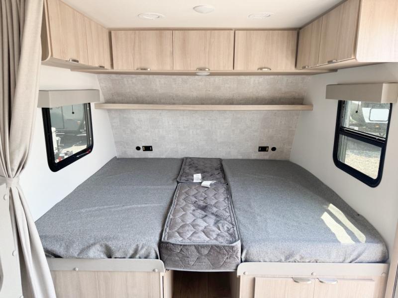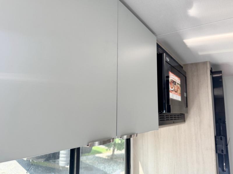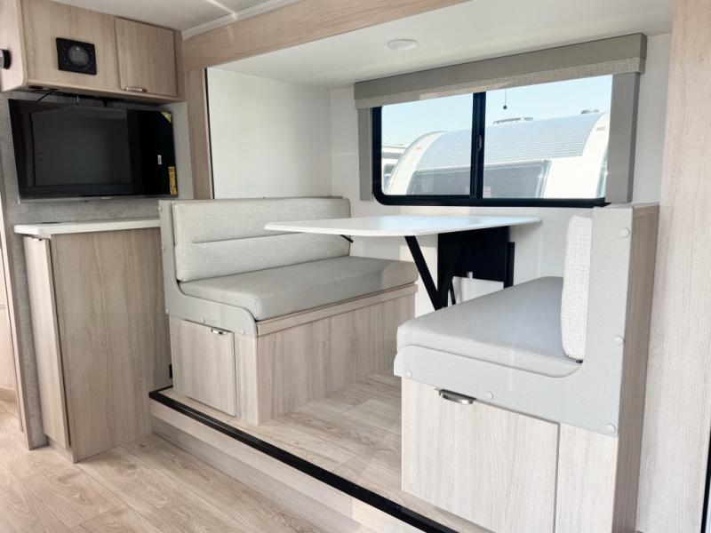 Come see just how accommodating this travel trailer can be! The two 32" x 74" twin beds up front have a nightstand in between them and a divider curtain to draw, plus they can convert into one 74" x 82" king-size bed. The 44" x 72" booth dinette slide can also convert into an extra sleeping space when you're not using it for meal time or playing games. Everyone can get squeaky clean in the full rear bathroom, and the wardrobe is a convenient place to store your linens and extra clothes. Grab a snack from the kitchen pantry or pop a bag of popcorn in the convection microwave then watch a movie on the Smart TV or head outdoors and relax underneath the power awning!