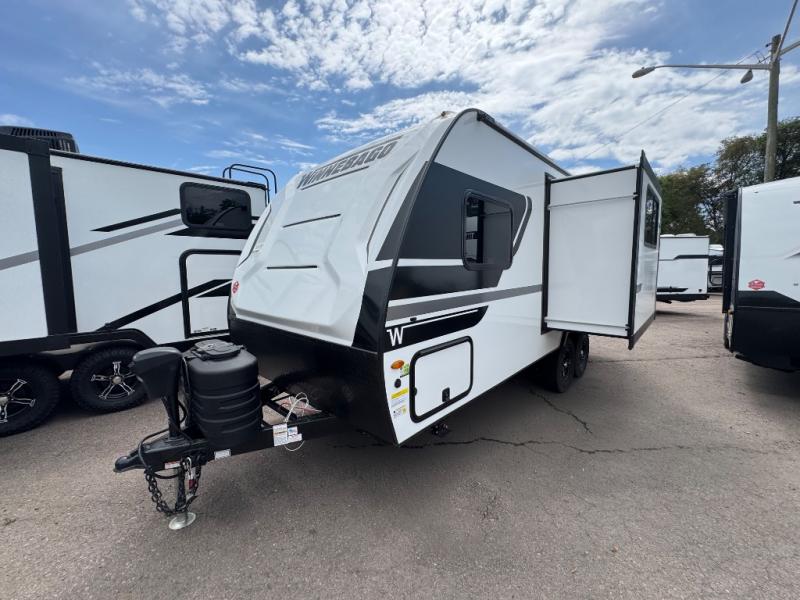 Start out on your boundless journey in one of these Winnebago Micro Minnie travel trailers! Towing is made simple with the 7' width to keep your Micro Minnie in your rear-view mirror. They don't lack in features either although they are compact in size. The spacious galley including a sink, refrigerator, a cooktop, and even a convection microwave oven allows you to cook without compromise. You will not only enjoy the entertainment found indoors with a Smart TV, a JBL premium sound system and Aura Cube high performance mechless media center, but outdoors you will also enjoy the JBL premium speakers and a power awning with LED lighting. Each model also comes with flexible exterior storage to make packing quick and easy, a 200-watt solar panel for off-grid camping, and Dexter TORFLEX torsion stub axles for smooth towing!