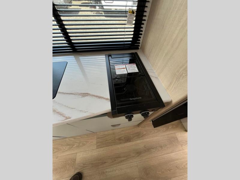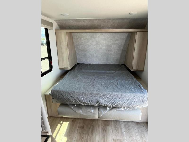This Micro Minnie FLX travel trailer will be an amazing addition to your upcoming travel plans! You will have extra space on the interior thanks to the single slide, and the front Murphy bed can fold away to reveal a sofa for lounging during the day. There also dual wardrobes and dual nightstands so everything has a place to go. The kitchen comes equipped with a convection microwave, recessed three-burner cooktop, 10 cu. ft. 12V refrigerator, and flip-up countertop. You also have the ability to switch out the dinette for the optional EZ Glide sofa sleeper with a hutch and table.