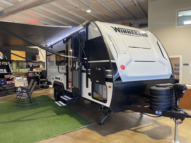 Every inch of the Winnebago Micro Minnie FLX travel trailer is worth checking out! These trailers are built with an NXG engineered frame, 1.5" thick FILON MAX fiberglass sidewalls with Azdel Onboard, plus larger off-road tires for easy towing. The FLX System includes four integrated technologies that will allow you to go off grid for up to five days without the need for a generator or external hookups. Within this system, there are two 200-watt solar panels, a 320-amp-hour Lithionics lithium-ion battery, a 3,000-watt pure sine wave inverter, plus a Truma AquaGo Comfort+ water heater and VarioHeat furnace which extends your water supply by providing instant hot water to faucets and your shower. You will love the interior with full-overlay European style cabinetry, versatile sleeping arrangements, a spacious full bath, and generous storage space for camp gear, personal belongings, and more!
