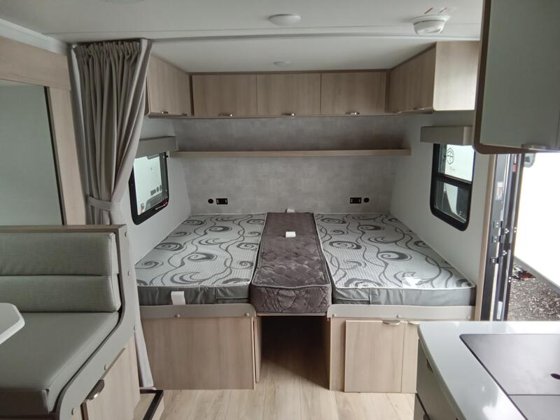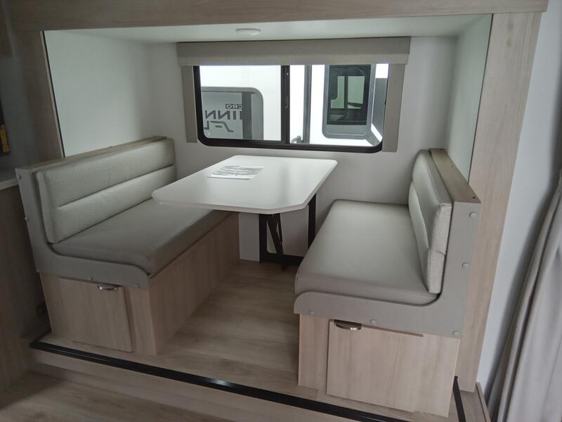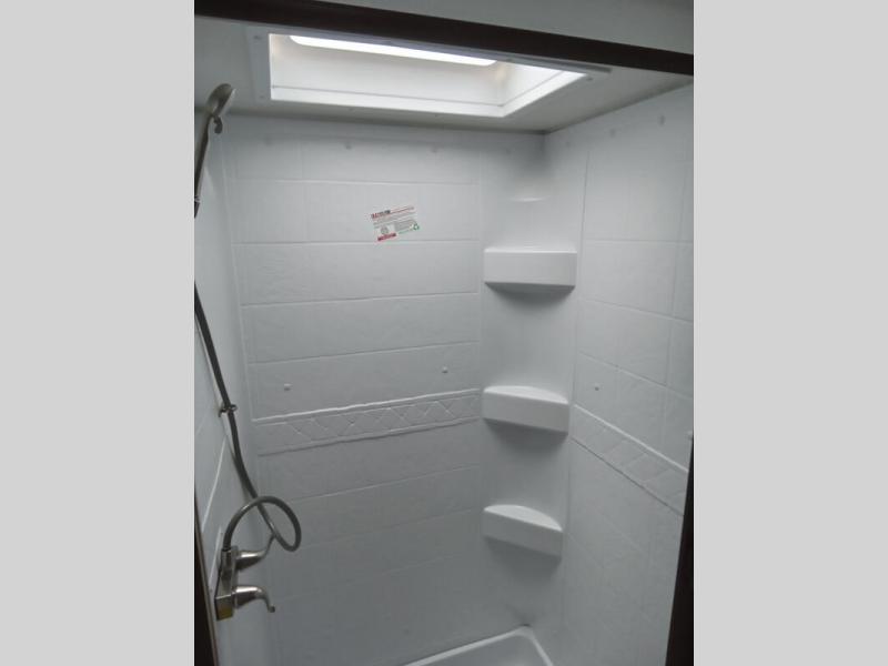 Head to your favorite destination with your favorite person in this Micro Minnie FLX travel trailer! It features two 32" x 74" twin beds up front with a nightstand in between and the ability to convert into a 74" x 82" king bed. You also have a divider curtain for privacy at night. Keep your bellies full with home cooked meals prepared with the recessed three burner cooktop, enjoy your meals at the 44" x 72" booth dinette slide, and store any leftovers in the 10 cu. ft. refrigerator. You could even switch out the dinette for the optional 58" x 66" EZ Glide sofa sleeper with a table and hutch above it. A pocket door closes off the full rear bathroom which has a 30" x 36" shower and a wardrobe to keep your towels close!