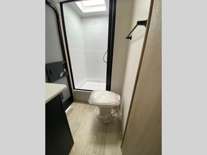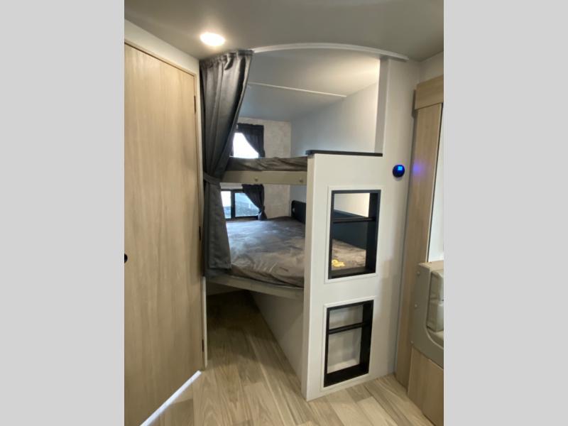 It will be easy to enter and exit this travel trailer with the dual entry doors! One of the entrances leads into the main living area by the front queen bed and the fully equipped kitchen while the second entry door leads directly into the rear corner bathroom which has a 30" x 36" shower to rinse the sand out of your hair. The kiddos will get a good night's rest on the corner 48" x 74" bunk beds with an exterior strutted door by them, and you can even transform the 72" sofa slide with table into an extra sleeping space. The sofa could also be switched out for optional theater seating or an optional U-shaped dinette. Store all of your outdoor gear in the exterior pass-through storage area too!