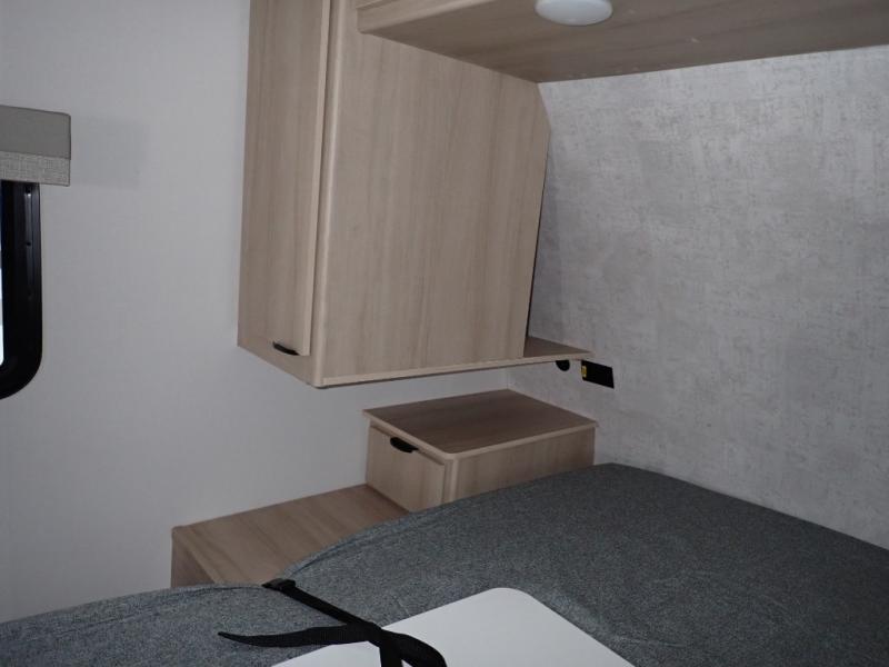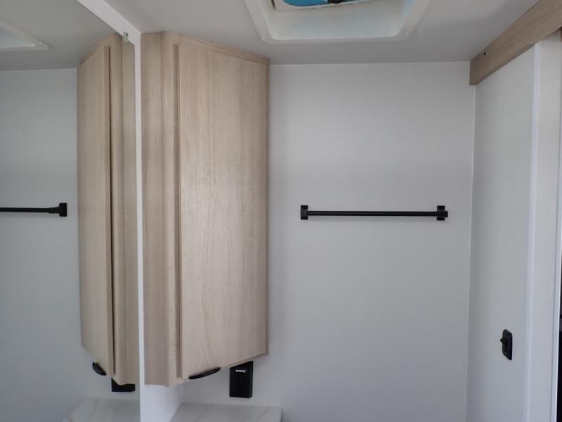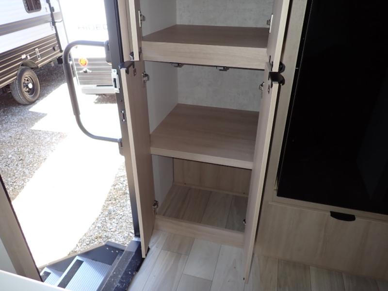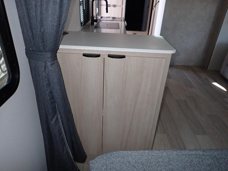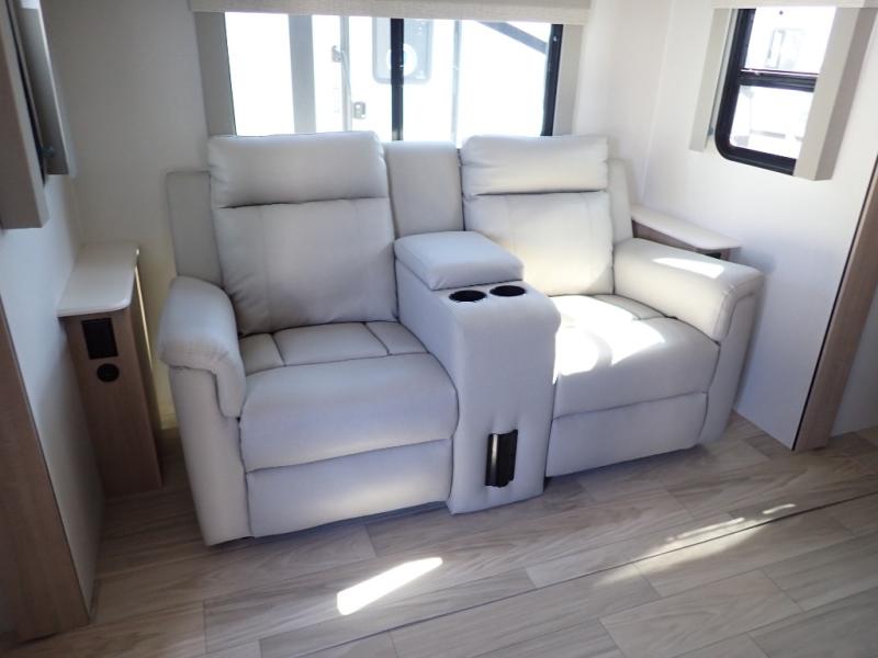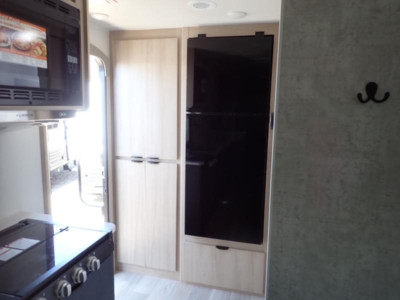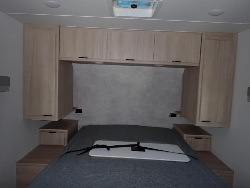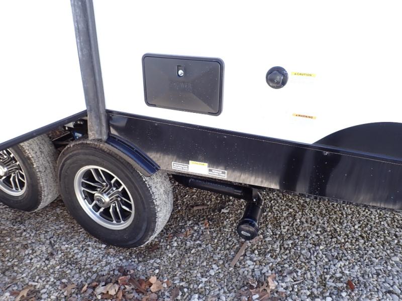 Pack your bags and head to your favorite camping spot in this travel trailer! You will get a good night's rest each night on the front queen bed with wardrobes on either side, and keep your bellies full with delicious meals prepared on the three burner cooktop. The kitchen also has a raised countertop with storage below it. After a fun day at the beach, you can freshen up in the rear corner bathroom with the 30" x 36" shower. The 72" sofa slide with table is a comfortable place to relax, unwind and enjoy a meal. You could also switch it out for an optional U-shaped dinette or optional theater seating!