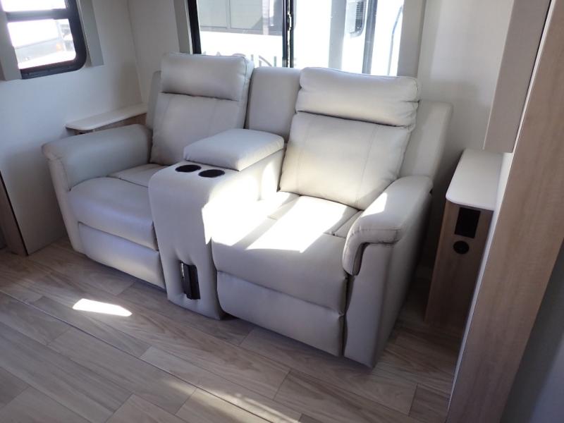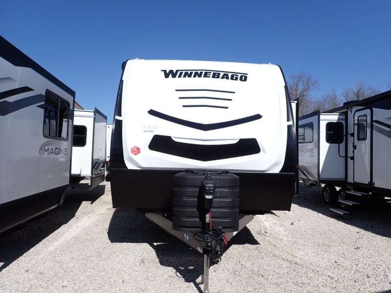 With any Minnie travel trailer by Winnebago, you'll be gaining an award-winning ticket to the good life! Lightweight towing is provided by the NXG engineered frame, and the Comfort Tech package will allow you to camp in all seasons with its enclosed underbelly, extreme weather radiant foil wrapping, and insulated heating ducts. Each model includes best-in-class exterior storage with up to 44 cu. ft. for all your camp gear, plus innovative interior storage for your belongings. You'll also find power stabilizer jacks outside, along with premium JBL speakers, an outdoor shower, a campside spray port, plus many more convenient features. The 200-watt solar panel will be perfect for some off-grid camping, and the Winnebago all-in-one control panel will allow you to control all of your units functions in one easy location. Head indoors to enjoy the full-overlay European style cabinetry and modern Cobalt decor, plus there are flexible furnishings, an open galley, and comfortable sleeping arrangements!