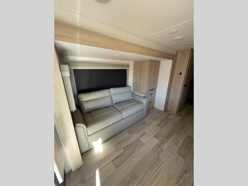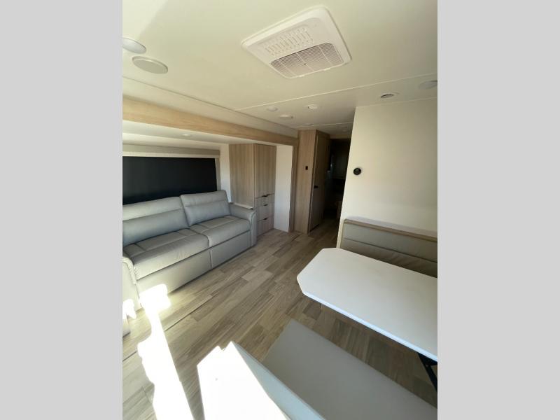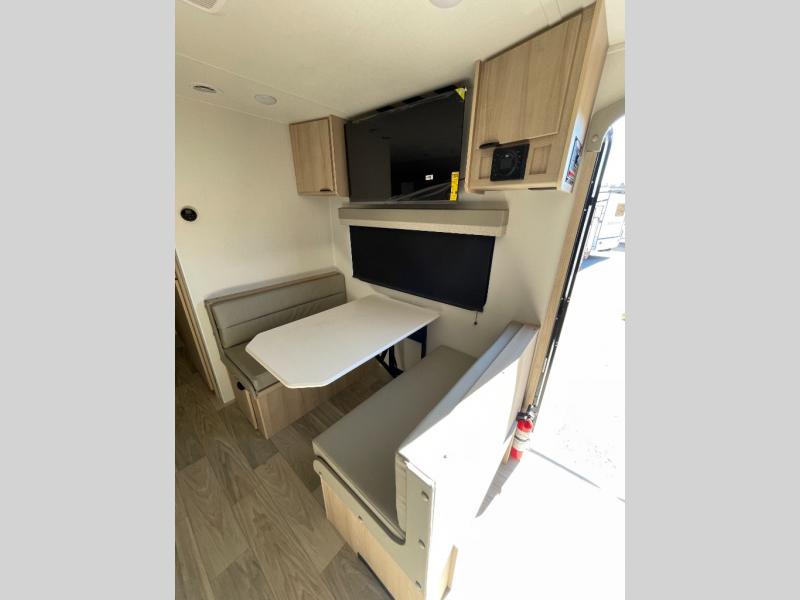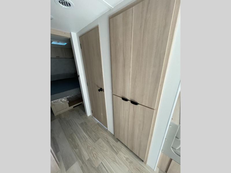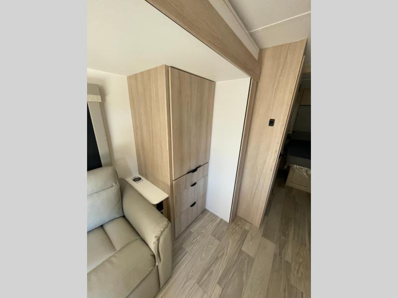 This travel trailer will feel just like home with its front private bedroom with its own exterior entry door, a full bath, plus a rear kitchen to cook up your best meals. Once lunch is made, you can dine at the booth dinette, or take your plate outdoors to sit under the 18' power awning with LED lights. The large slide out will provide more space to let the dog nap on the floor, and there is a Smart TV to watch a movie on those rainy camp days. You'll also find plenty of storage space throughout this travel trailer for all your belongings, and exterior storage for camp gear!