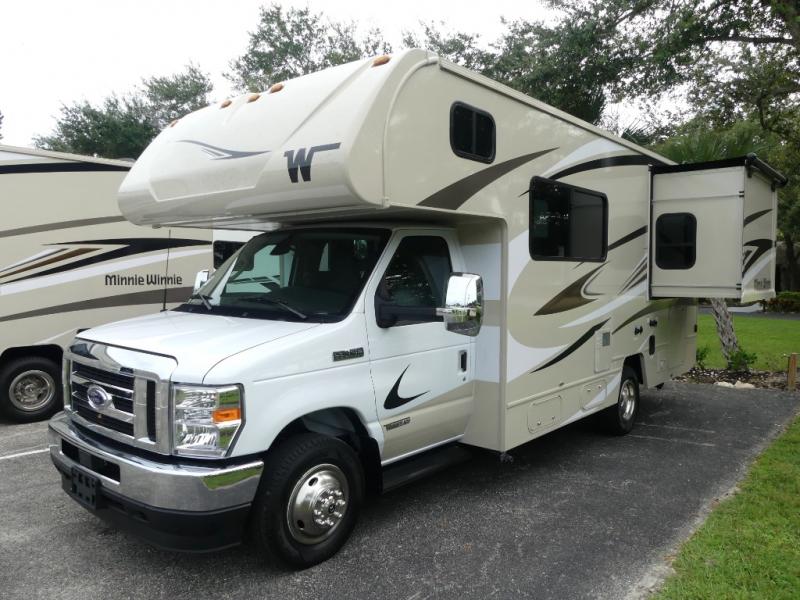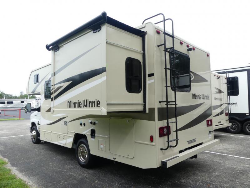 Choose your adventure with one of these Winnebago Minnie Winnie Class C gas motorhomes! The 7.3L V8 premium engine and Ford E450 chassis makes light work of long hills. Their superior craftsmanship that was designed and built for you is shown through the Smart Driver Assist technology that includes adaptive cruise control, lane departure warning, forward collision warning, and more. With flexible seating/sleeping options and a full galley with Corian solid surface countertops, everyone will stay well rested and fed. You can store all of your traveling necessities between the overhead cabinets throughout the inside and the exterior lighted large trunk storage compartment for your outdoor gear. Come find the model perfect for you today!