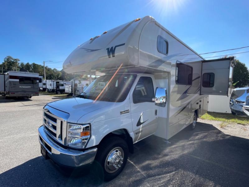 Choose your adventure with one of these Winnebago Minnie Winnie Class C gas motorhomes! The 7.3L V8 premium engine and Ford E450 chassis makes light work of long hills. Their superior craftsmanship that was designed and built for you is shown through the Smart Driver Assist technology that includes adaptive cruise control, lane departure warning, forward collision warning, and more. With flexible seating/sleeping options and a full galley with Corian solid surface countertops, everyone will stay well rested and fed. You can store all of your traveling necessities between the overhead cabinets throughout the inside and the exterior lighted large trunk storage compartment for your outdoor gear. Come find the model perfect for you today!