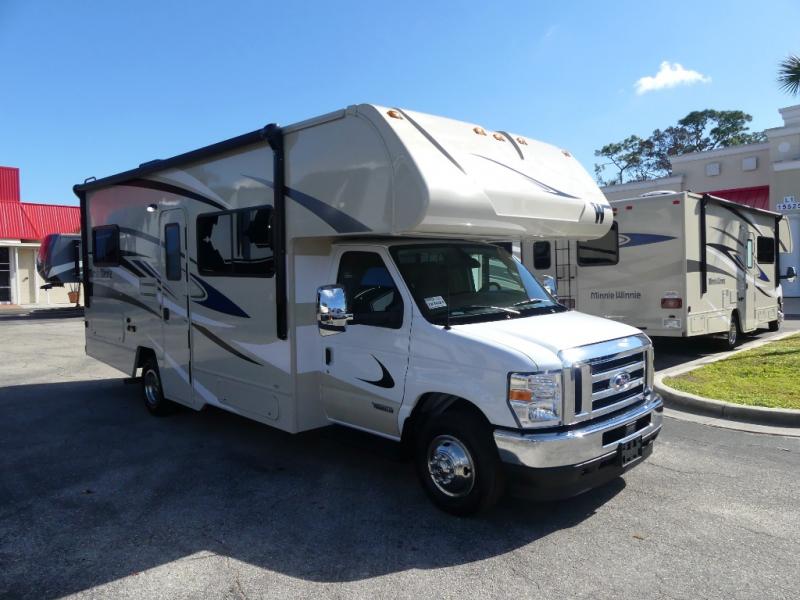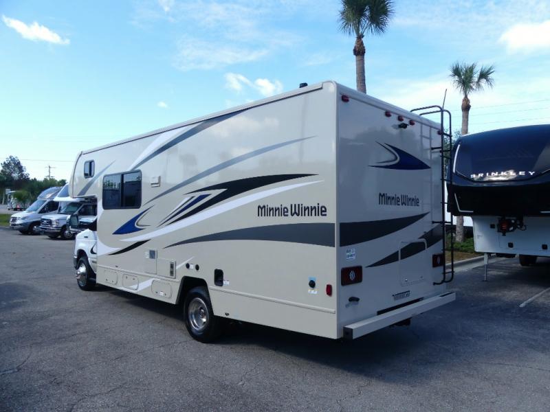 Choose your adventure with one of these Winnebago Minnie Winnie Class C gas motorhomes! The 7.3L V8 premium engine and Ford E450 chassis makes light work of long hills. Their superior craftsmanship that was designed and built for you is shown through the Smart Driver Assist technology that includes adaptive cruise control, lane departure warning, forward collision warning, and more. With flexible seating/sleeping options and a full galley with Corian solid surface countertops, everyone will stay well rested and fed. You can store all of your traveling necessities between the overhead cabinets throughout the inside and the exterior lighted large trunk storage compartment for your outdoor gear. Come find the model perfect for you today!