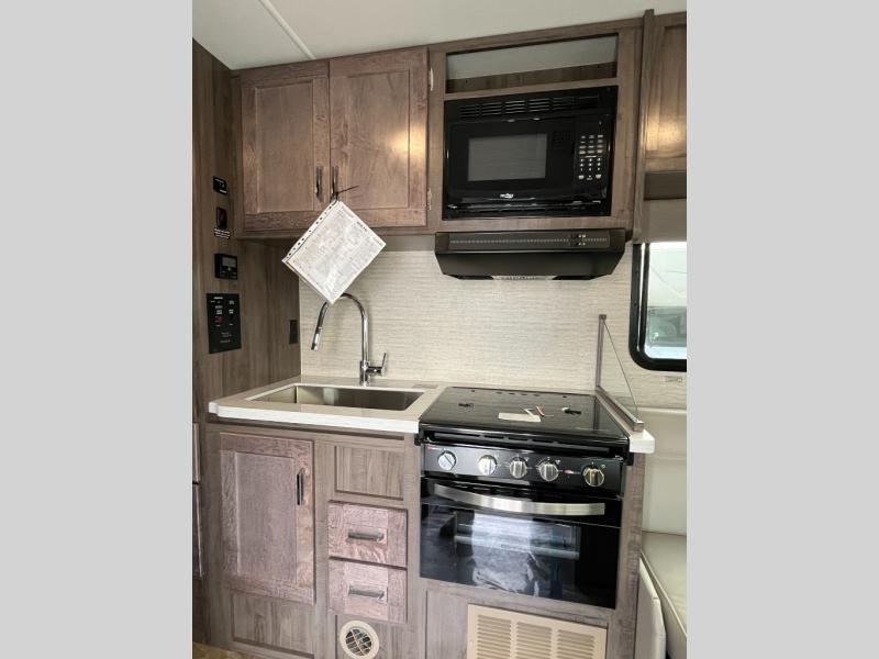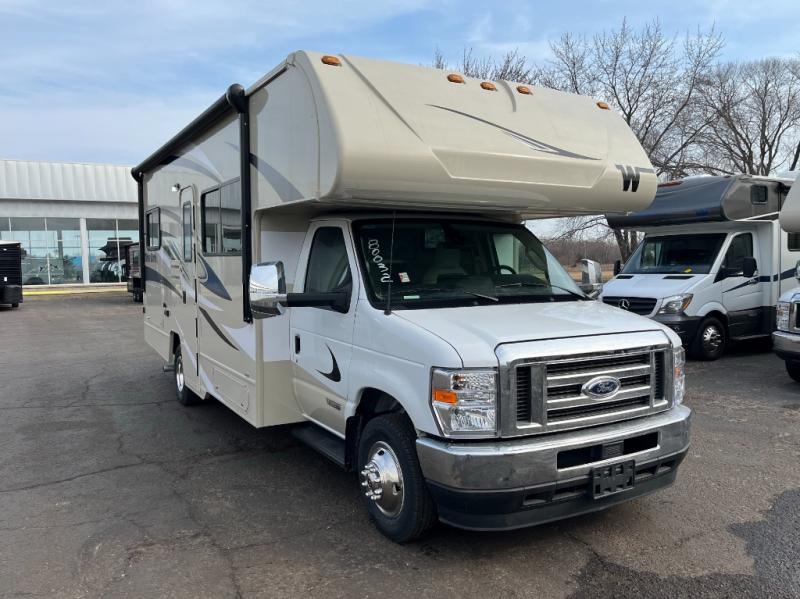 Choose your adventure with one of these Winnebago Minnie Winnie Class C gas motorhomes! The 7.3L V8 premium engine and Ford E450 chassis makes light work of long hills. Their superior craftsmanship that was designed and built for you is shown through the Smart Driver Assist technology that includes adaptive cruise control, lane departure warning, forward collision warning, and more. With flexible seating/sleeping options and a full galley with Corian solid surface countertops, everyone will stay well rested and fed. You can store all of your traveling necessities between the overhead cabinets throughout the inside and the exterior lighted large trunk storage compartment for your outdoor gear. Come find the model perfect for you today!