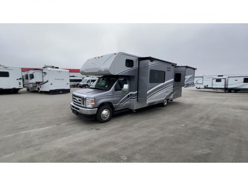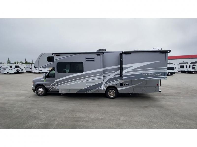 Choose your adventure with one of these Winnebago Minnie Winnie Class C gas motorhomes! The 7.3L V8 premium engine and Ford E450 chassis makes light work of long hills. Their superior craftsmanship that was designed and built for you is shown through the Smart Driver Assist technology that includes adaptive cruise control, lane departure warning, forward collision warning, and more. With flexible seating/sleeping options and a full galley with Corian solid surface countertops, everyone will stay well rested and fed. You can store all of your traveling necessities between the overhead cabinets throughout the inside and the exterior lighted large trunk storage compartment for your outdoor gear. Come find the model perfect for you today!
