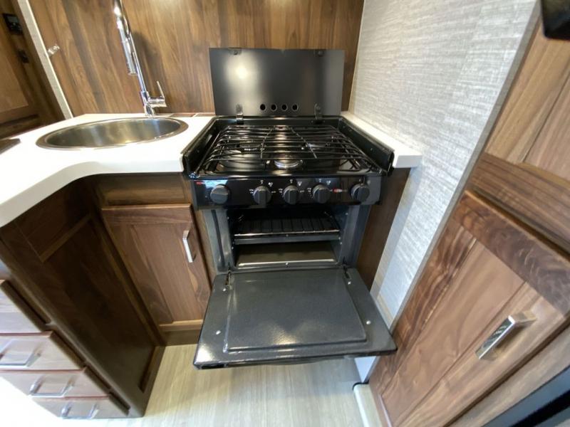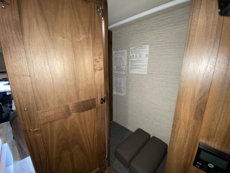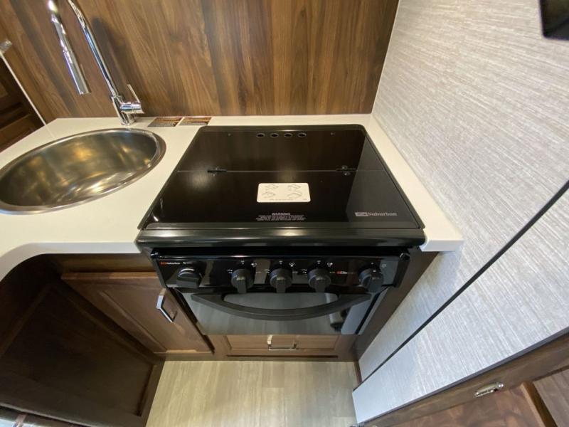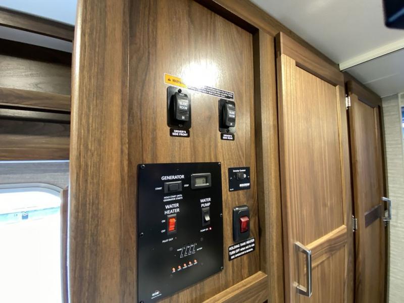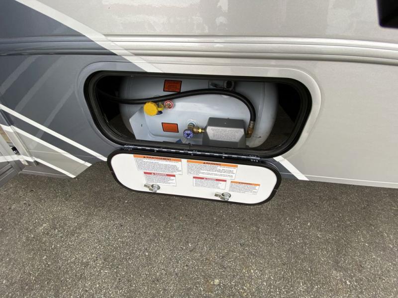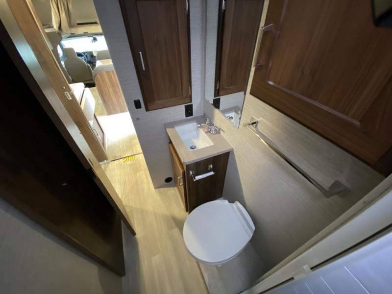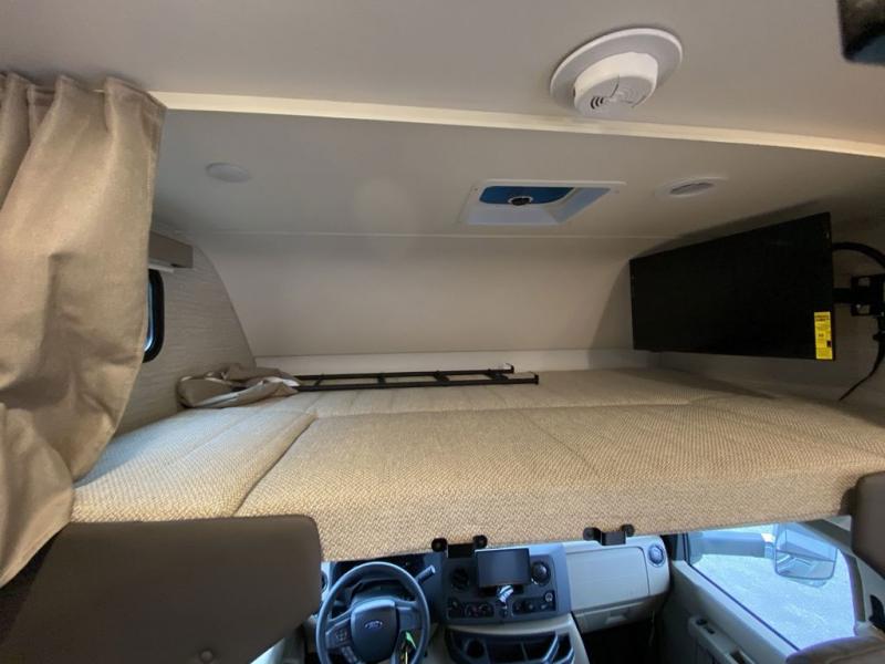 Experience a home away from home with this motorhome! The rear corner private bedroom has a 60" x 75" queen bed slide with nightstands on either side, a 24" HDTV, and an entrance into the rear corner bathroom which has a 24" x 32" shower with skylight to freshen up in the morning. Just outside the bathroom is a wardrobe and storage area to keep your items out of the way. The chef can prepare their best home cooked meals with the three burner range with glass cover and oven and the flip-up countertop extension provides more prepping space. Enjoy your meals at the 45" x 74" U-shaped dinette and relax at night on the 40" x 60" sofa bed that you could switch out for optional theater seating instead. The 57" x 95" bunk over cab with a 32" HDTV is perfect for sleeping or to be used as storage space!