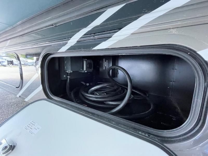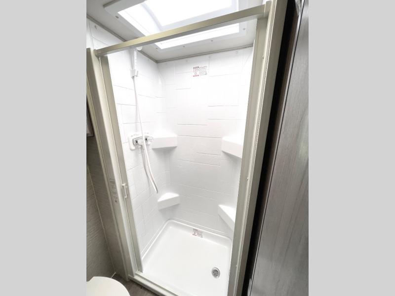 Experience a home away from home with this motorhome! The rear corner private bedroom has a 60" x 75" queen bed slide with nightstands on either side, a 24" HDTV, and an entrance into the rear corner bathroom which has a 24" x 32" shower with skylight to freshen up in the morning. Just outside the bathroom is a wardrobe and storage area to keep your items out of the way. The chef can prepare their best home cooked meals with the three burner range with glass cover and oven and the flip-up countertop extension provides more prepping space. Enjoy your meals at the 45" x 74" U-shaped dinette and relax at night on the 40" x 60" sofa bed that you could switch out for optional theater seating instead. The 57" x 95" bunk over cab with a 32" HDTV is perfect for sleeping or to be used as storage space!