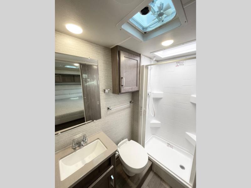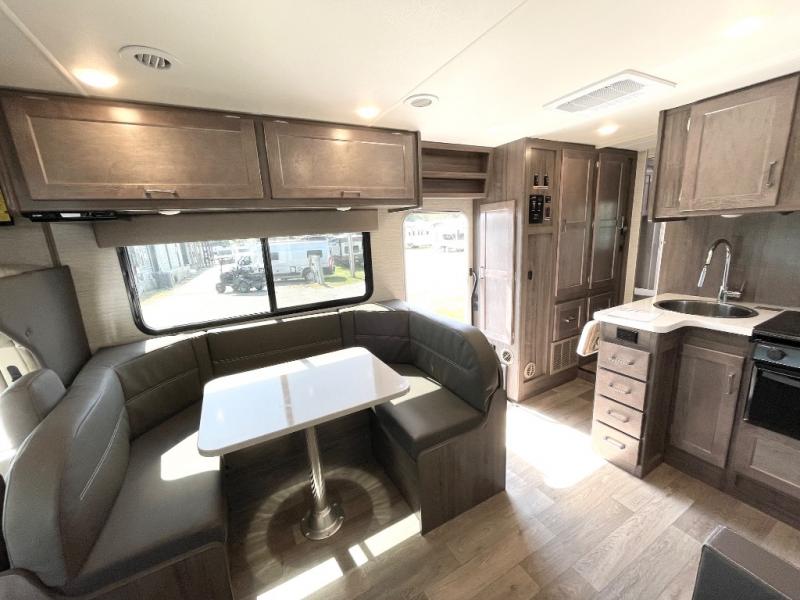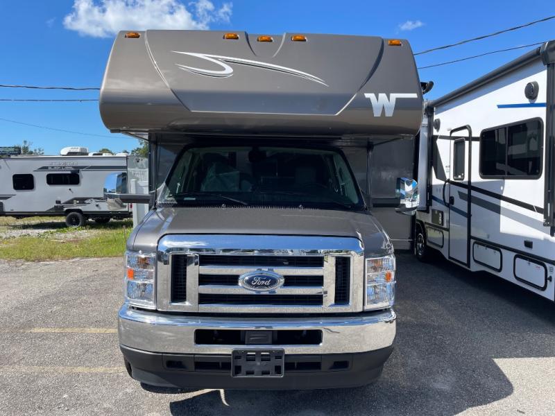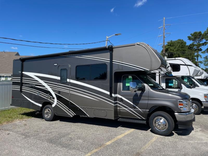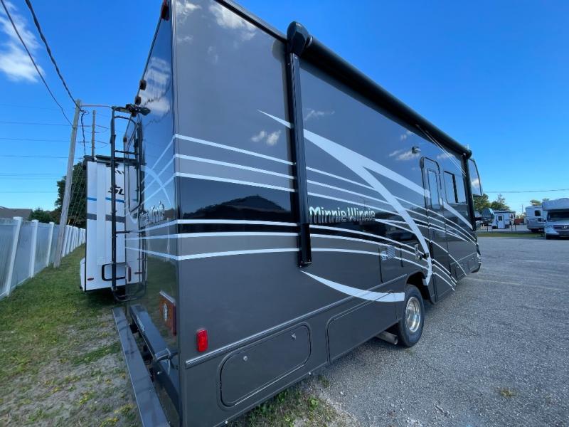 Choose your adventure with one of these Winnebago Minnie Winnie Class C gas motorhomes! The 7.3L V8 premium engine and Ford E450 chassis makes light work of long hills. Their superior craftsmanship that was designed and built for you is shown through the Smart Driver Assist technology that includes adaptive cruise control, lane departure warning, forward collision warning, and more. With flexible seating/sleeping options and a full galley with Corian solid surface countertops, everyone will stay well rested and fed. You can store all of your traveling necessities between the overhead cabinets throughout the inside and the exterior lighted large trunk storage compartment for your outdoor gear. Come find the model perfect for you today!