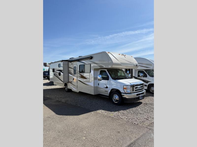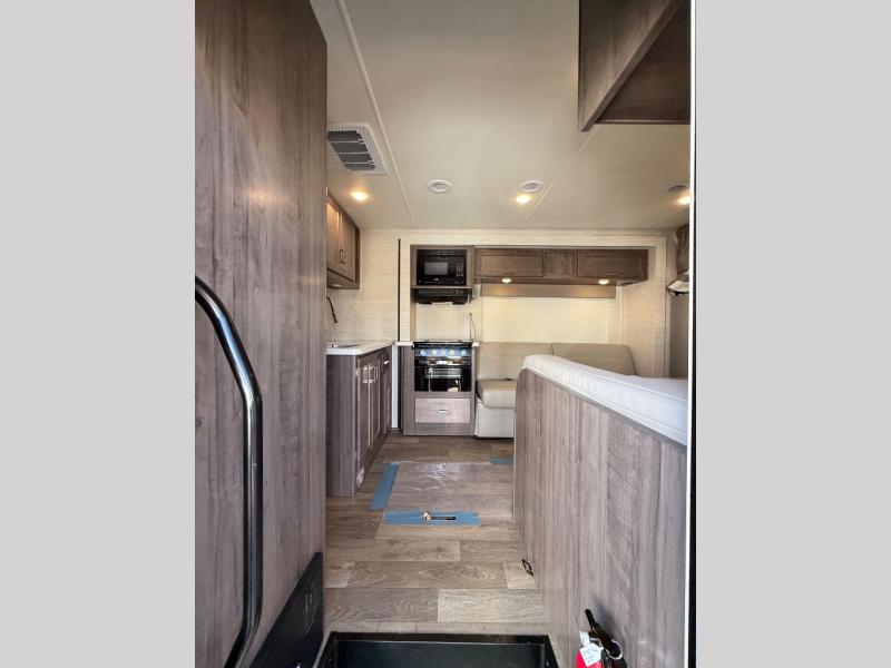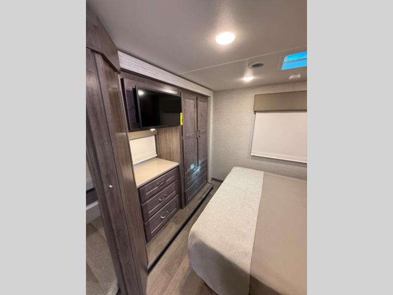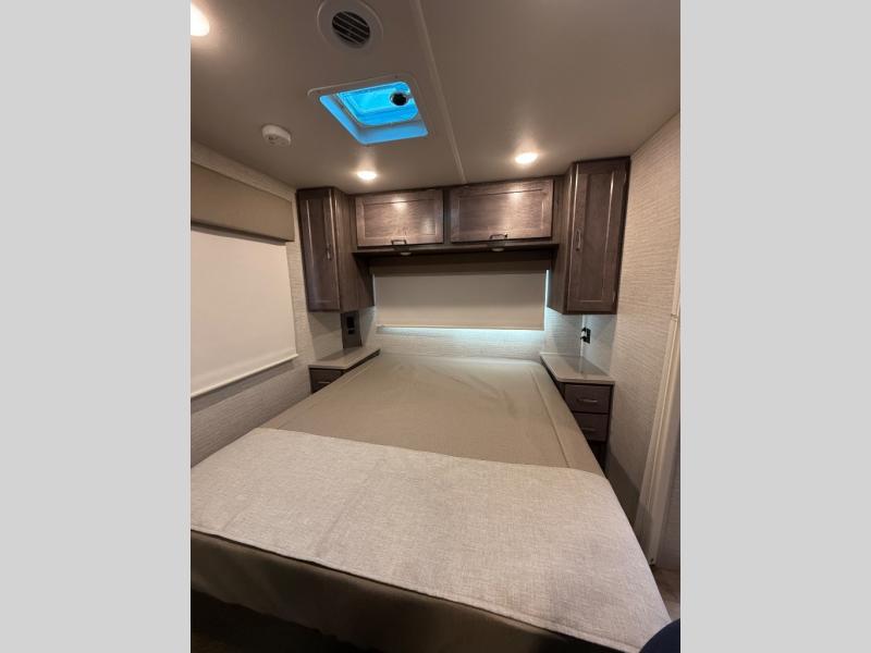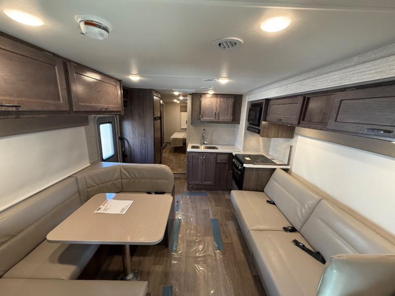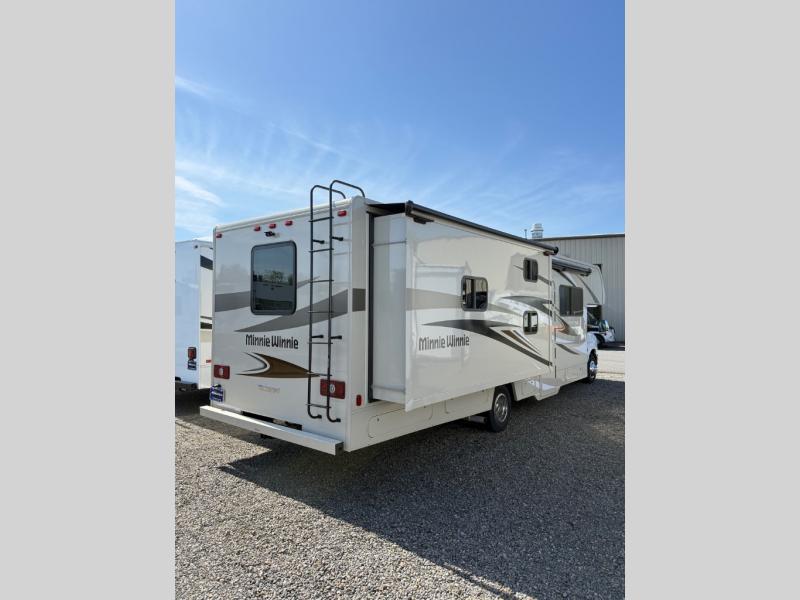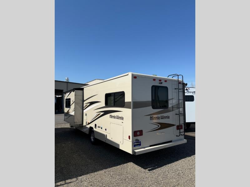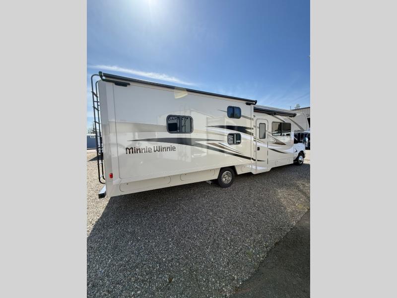 Choose your adventure with one of these Winnebago Minnie Winnie Class C gas motorhomes! The 7.3L V8 premium engine and Ford E450 chassis makes light work of long hills. Their superior craftsmanship that was designed and built for you is shown through the Smart Driver Assist technology that includes adaptive cruise control, lane departure warning, forward collision warning, and more. With flexible seating/sleeping options and a full galley with Corian solid surface countertops, everyone will stay well rested and fed. You can store all of your traveling necessities between the overhead cabinets throughout the inside and the exterior lighted large trunk storage compartment for your outdoor gear. Come find the model perfect for you today!