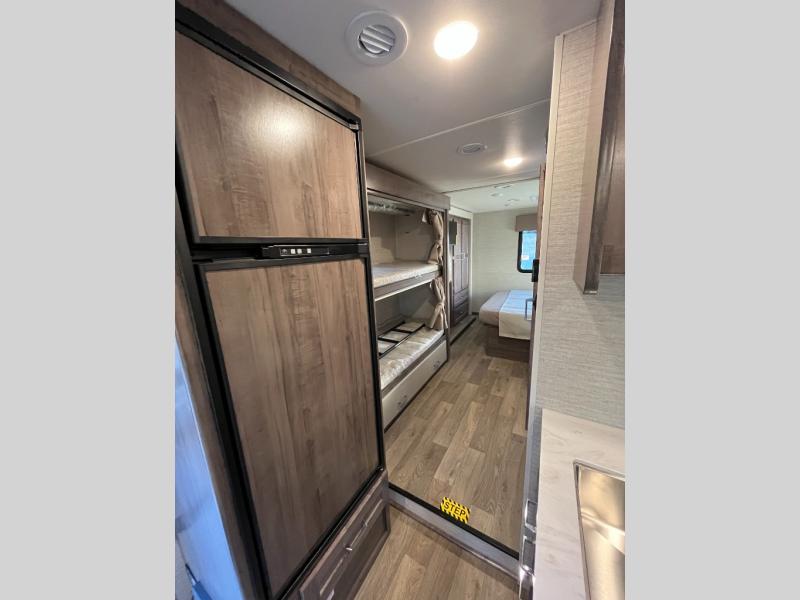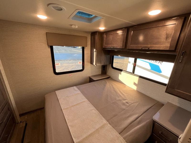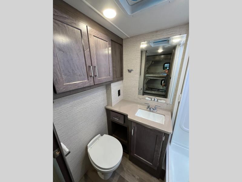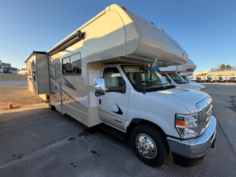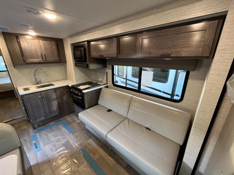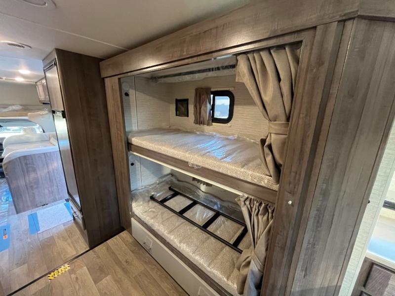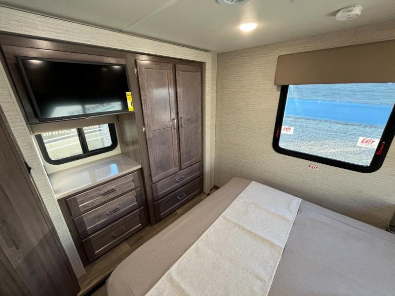 Choose your adventure with one of these Winnebago Minnie Winnie Class C gas motorhomes! The 7.3L V8 premium engine and Ford E450 chassis makes light work of long hills. Their superior craftsmanship that was designed and built for you is shown through the Smart Driver Assist technology that includes adaptive cruise control, lane departure warning, forward collision warning, and more. With flexible seating/sleeping options and a full galley with Corian solid surface countertops, everyone will stay well rested and fed. You can store all of your traveling necessities between the overhead cabinets throughout the inside and the exterior lighted large trunk storage compartment for your outdoor gear. Come find the model perfect for you today!