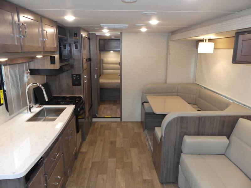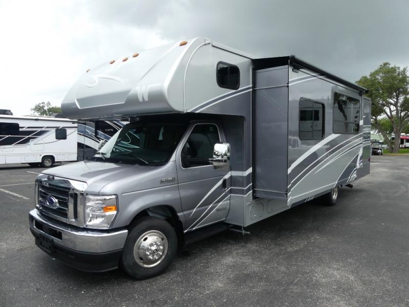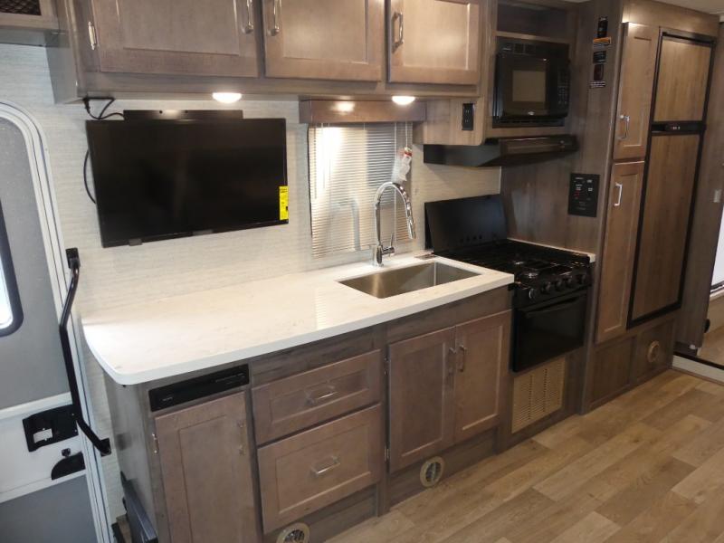Choose your adventure with one of these Winnebago Minnie Winnie Class C gas motorhomes! The 7.3L V8 premium engine and Ford E450 chassis makes light work of long hills. Their superior craftsmanship that was designed and built for you is shown through the Smart Driver Assist technology that includes adaptive cruise control, lane departure warning, forward collision warning, and more. You can store all of your traveling necessities between the overhead cabinets throughout the inside and the exterior lighted large trunk storage compartment for your outdoor gear. Come find the model perfect for you today!