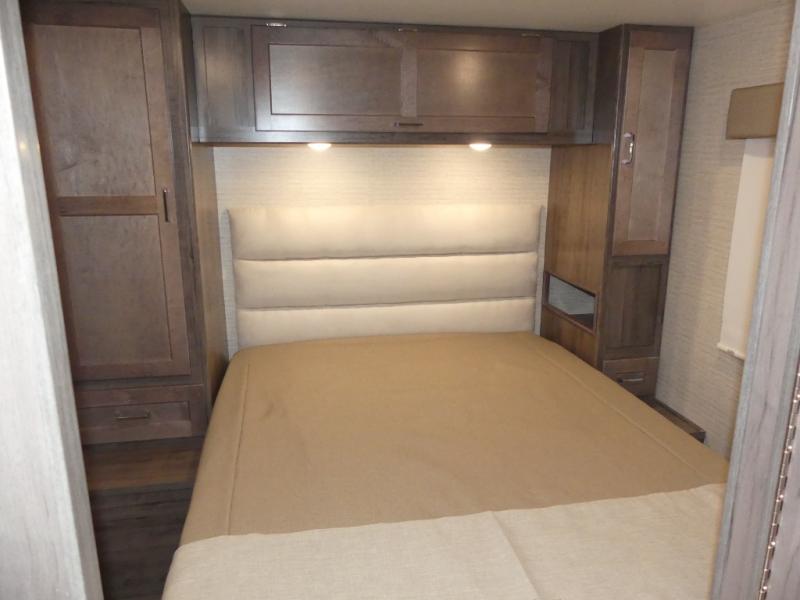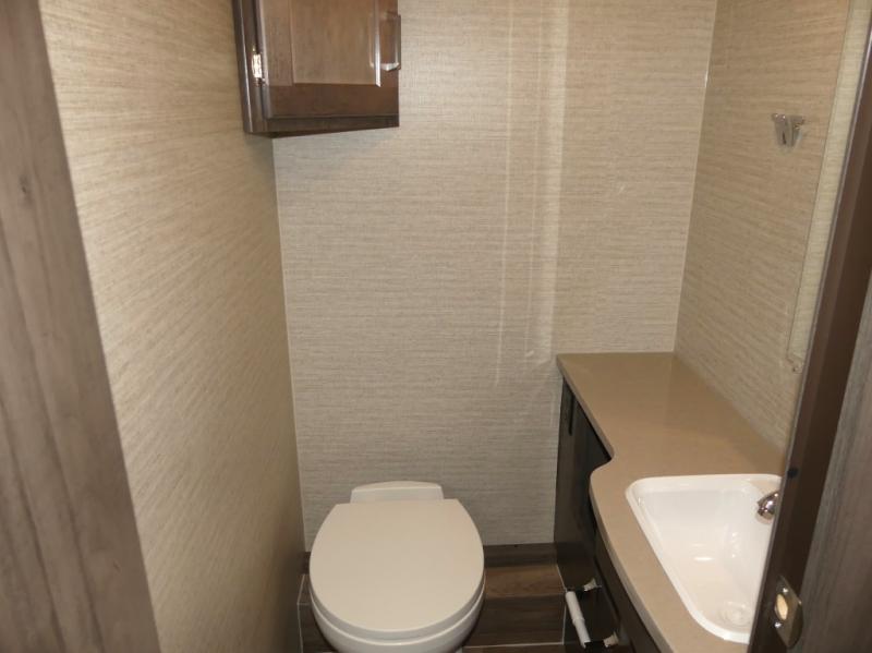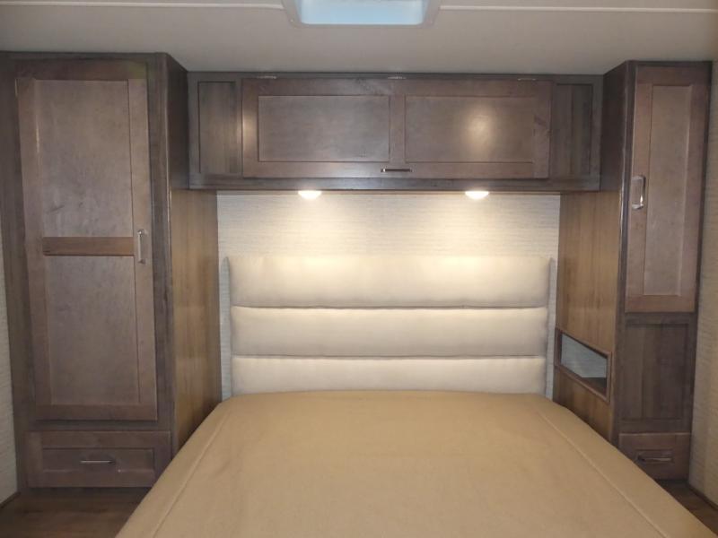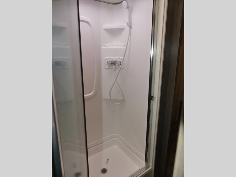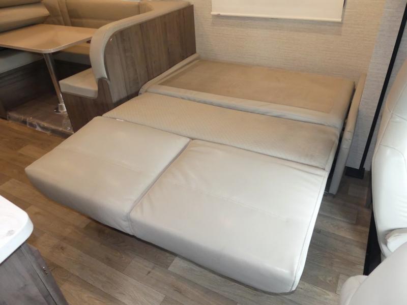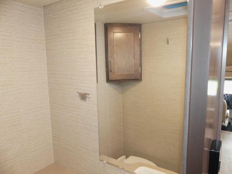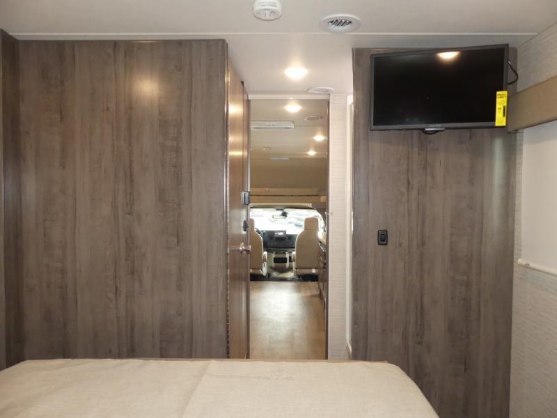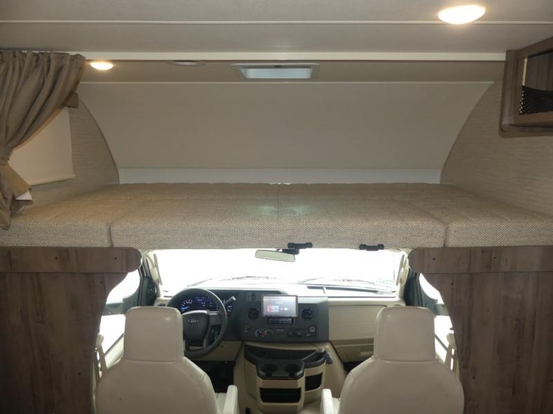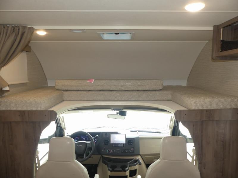 You won't want to travel any other way once you step inside this motorhome! It features a rear private bedroom with a 60" x 80" queen bed that has wardrobes on either side and 24" HDTV for entertainment. The separated bathroom makes it easy for one person to freshen up in the 26" x 30" shower with a skylight while another uses the private toilet and sink. A sliding door closes off the bathroom from the kitchen area which has a three burner range with glass cover and oven and a two way large double door 8 cu. ft. refrigerator/freezer with woodgrain paneling to store your perishables. Enjoy your meals at the 45" x 82" U-shaped dinette then relax on the 40" x 60" sofa bed. You even have a 57" x 95" bunk over cab for sleeping or storage space!