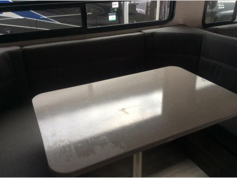Premium interior touches: solid surface countertops, generous storage inside and out, modern driver assist features like adaptive cruise control and lane-departure warning for safer travel.