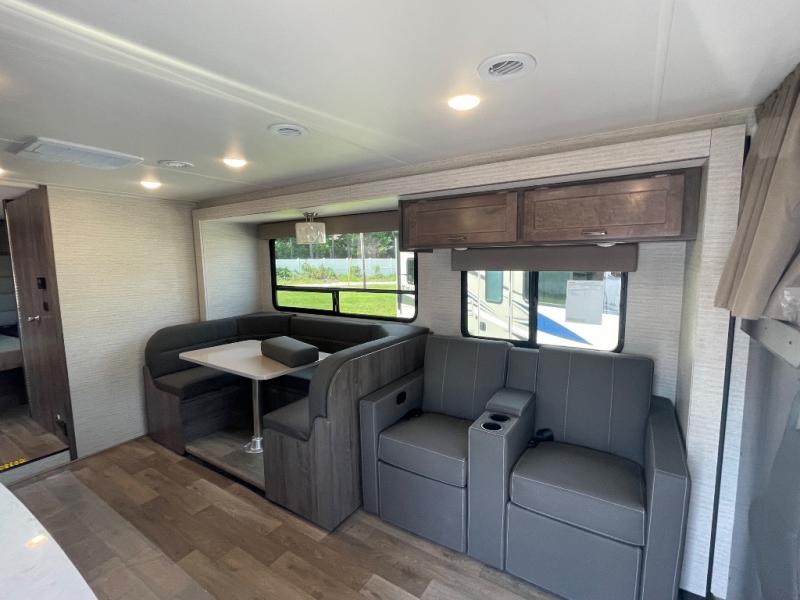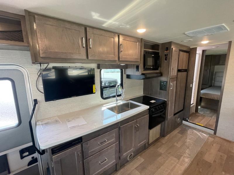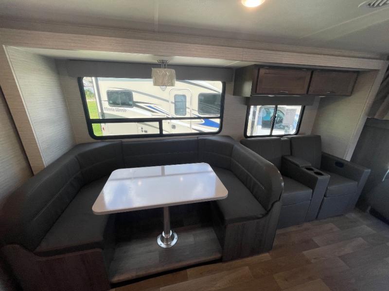 Choose your adventure with one of these Winnebago Minnie Winnie Class C gas motorhomes! The 7.3L V8 premium engine and Ford E450 chassis makes light work of long hills. Their superior craftsmanship that was designed and built for you is shown through the Smart Driver Assist technology that includes adaptive cruise control, lane departure warning, forward collision warning, and more. With flexible seating/sleeping options and a full galley with Corian solid surface countertops, everyone will stay well rested and fed. You can store all of your traveling necessities between the overhead cabinets throughout the inside and the exterior lighted large trunk storage compartment for your outdoor gear. Come find the model perfect for you today!