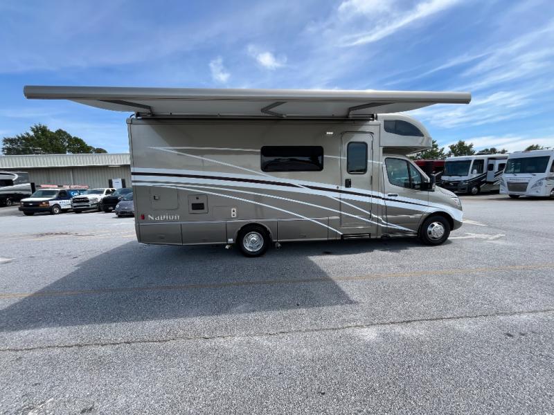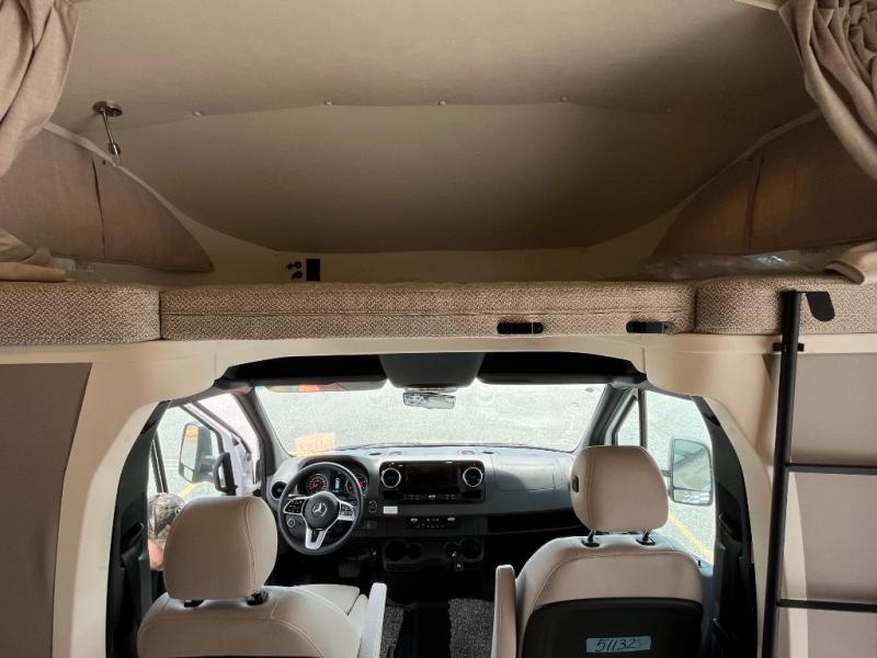 With the Winnebago Navion Class C diesel motorhome, campsite setup is made easier with a powered patio awning with LED lights and Bluetooth control that you can control with a smartphone app, a slide out that is easily moved outward with a push of a button, and your sleeping accommodations are flexible with your activities. The Mercedes-Benz RWD Sprinter chassis, turbo-diesel engine, Adaptive ESP technology, and hydraulic brakes with ABS, are a few reasons you will love driving this coach anywhere, plus all the cab conveniences. The interior offers laminate countertops and vinyl flooring throughout for easy care, cabinets with accent lighting, toe kick lighting to help when your hands are full, and charging stations for your electronics. You will stay powered up with two 100-watt solar panels, a 3,600-watt Cummins Onan MicroQuiet LP generator, a 2,000-watt pure sine wave inverter, plus more features included with the electrical system.