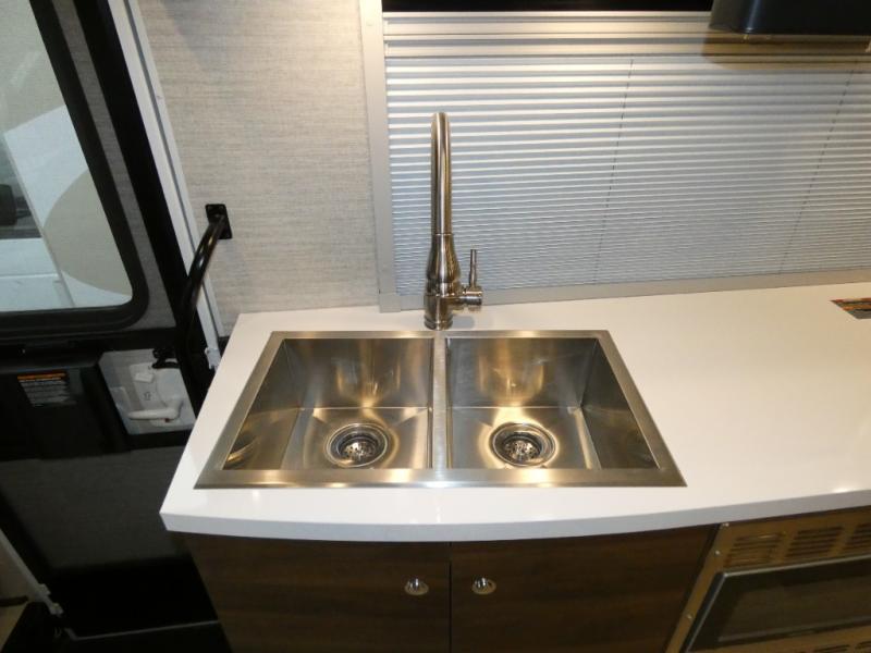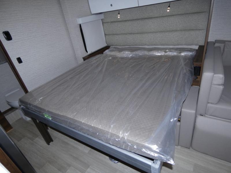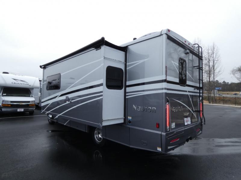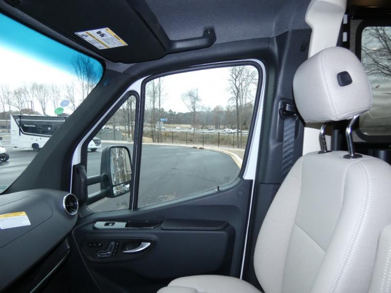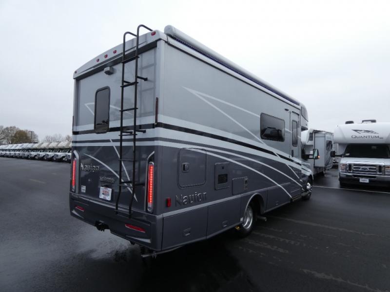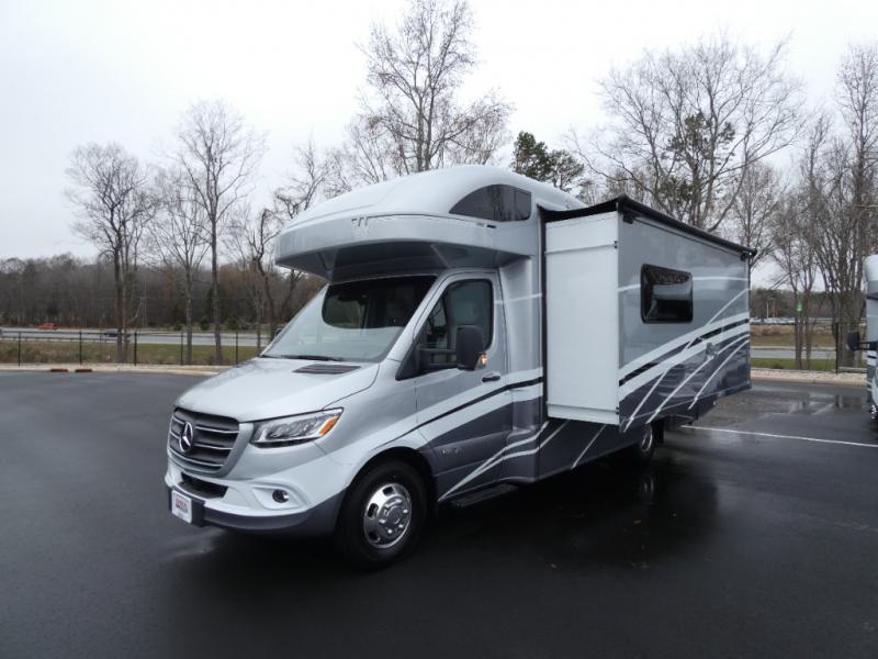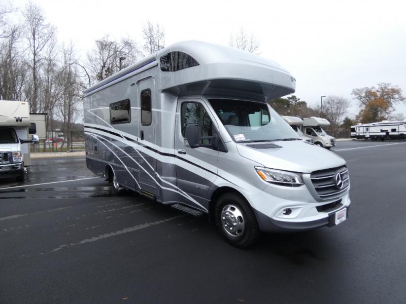 With the Winnebago Navion Class C diesel motorhome, campsite setup is made easier with a powered patio awning with LED lights and Bluetooth control that you can control with a smartphone app, a slide out that is easily moved outward with a push of a button, and your sleeping accommodations are flexible with your activities. The Mercedes-Benz RWD Sprinter chassis, turbo-diesel engine, Adaptive ESP technology, and hydraulic brakes with ABS, are a few reasons you will love driving this coach anywhere, plus all the cab conveniences. The interior offers laminate countertops and vinyl flooring throughout for easy care, cabinets with accent lighting, toe kick lighting to help when your hands are full, and charging stations for your electronics. You will stay powered up with two 100-watt solar panels, a 3,600-watt Cummins Onan MicroQuiet LP generator, a 2,000-watt pure sine wave inverter, plus more features included with the electrical system.