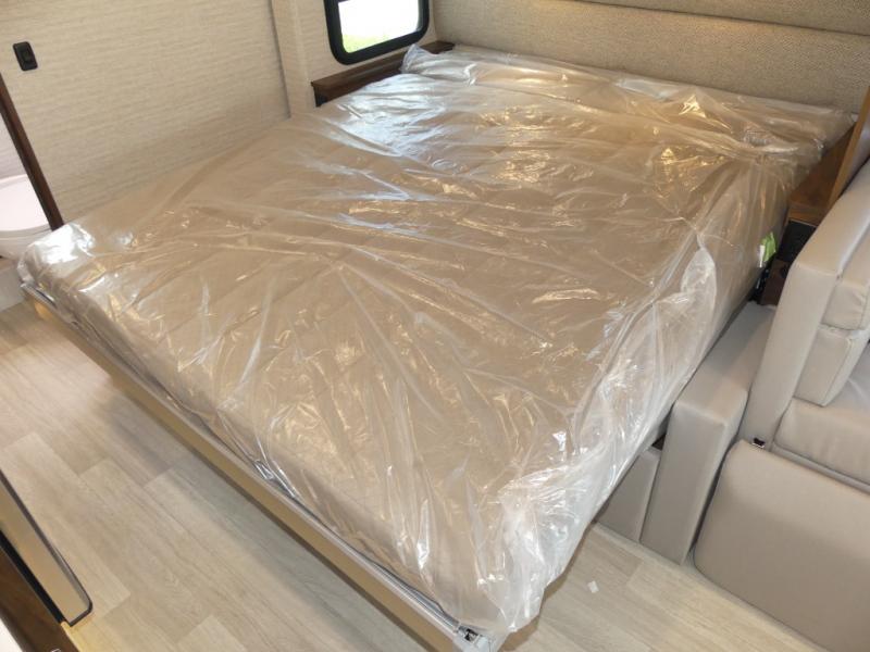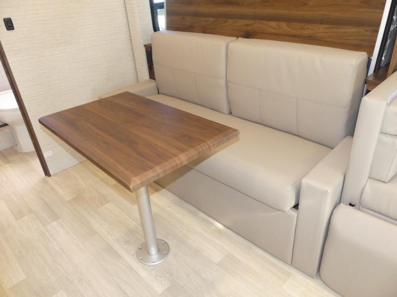 This family-friendly coach offers sleeping space for six when you utilize the Murphy Bed, the cabover bunk and the U-shaped dinette with footrests as sleeping space! If you're not needing the extra sleeping space, just choose the optional theater seating in place of the dinette. During the day, the sofa easily replaces the Murphy bed so you can dine at the pedestal table that you grabbed from the front area's location. The heated power control cab seats include armrests, adjustable lumbar support, headrest, recline, slide and manual swivel functions giving you ultimate comfort on the road and while at your RV spot. The cook will love having a galley kitchen with a microwave/convection oven and 12V compressor-driven refrigerator/freezer to keep everyone fed.