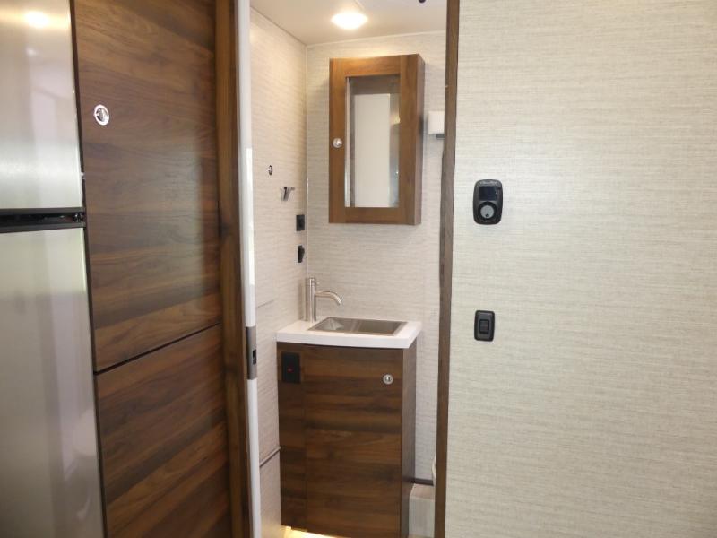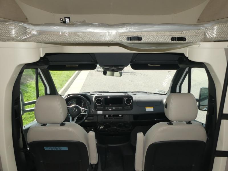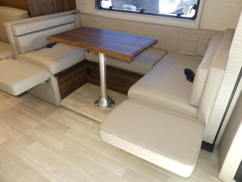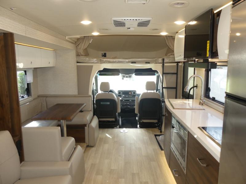 With the Winnebago Navion Class C diesel motorhome, campsite setup is made easier with a powered patio awning with LED lights and Bluetooth control that you can control with a smartphone app, a slide out that is easily moved outward with a push of a button, and your sleeping accommodations are flexible with your activities. The Mercedes-Benz RWD Sprinter chassis, turbo-diesel engine, Adaptive ESP technology, and hydraulic brakes with ABS, are a few reasons you will love driving this coach anywhere, plus all the cab conveniences. The interior offers laminate countertops and vinyl flooring throughout for easy care, cabinets with accent lighting, toe kick lighting to help when your hands are full, and charging stations for your electronics. You will stay powered up with two 100-watt solar panels, a 3,600-watt LP generator, a 2,000-watt pure sine wave inverter, plus more features included with the electrical system.