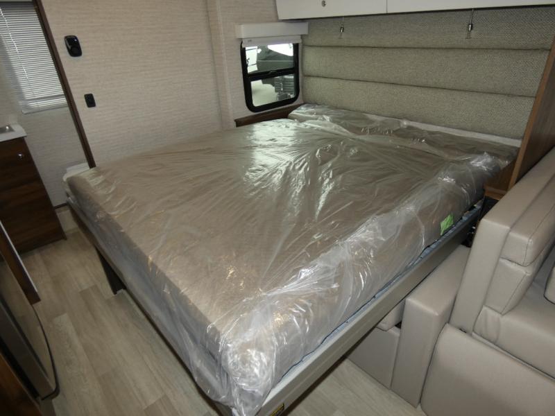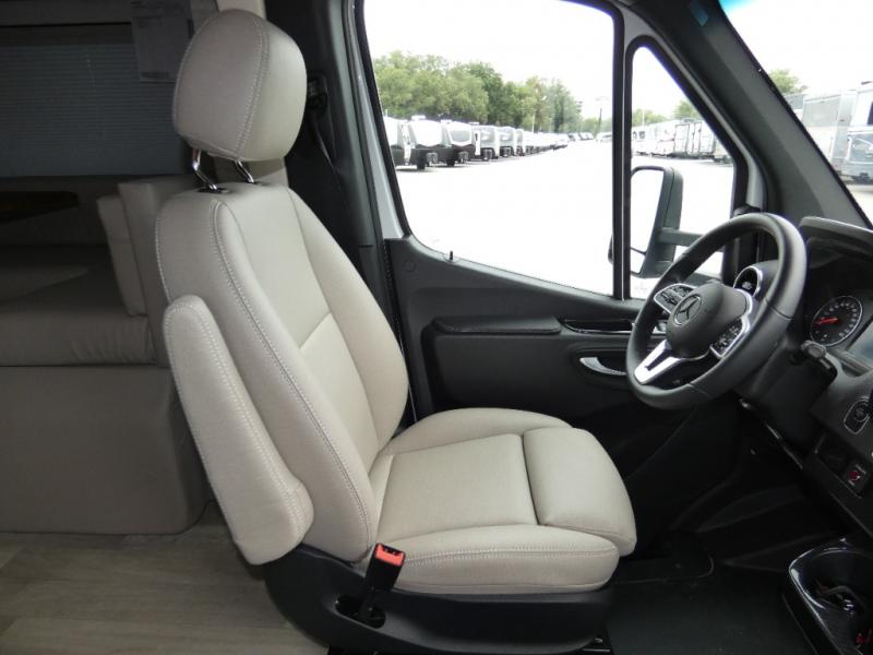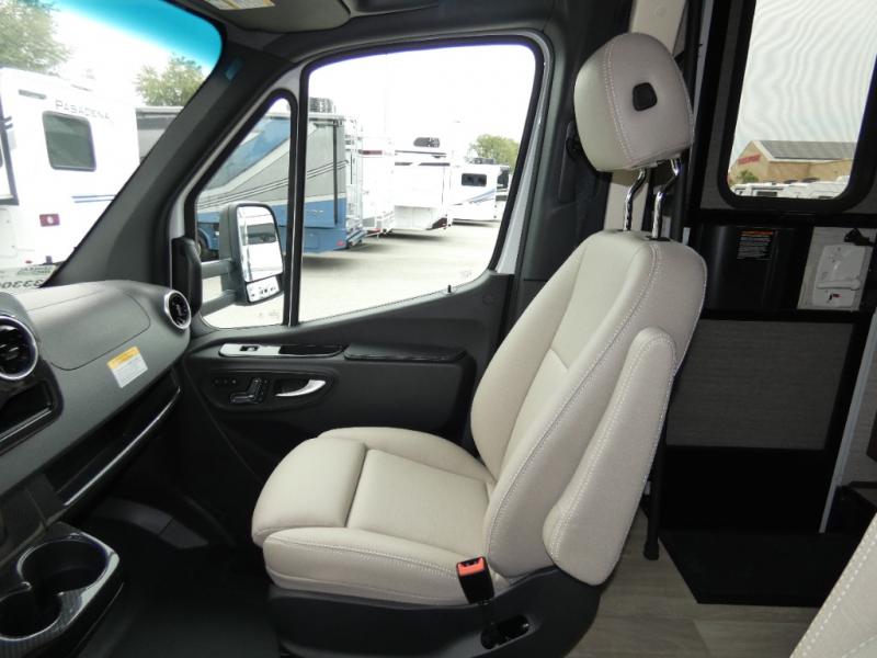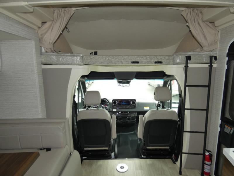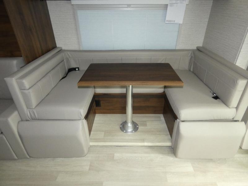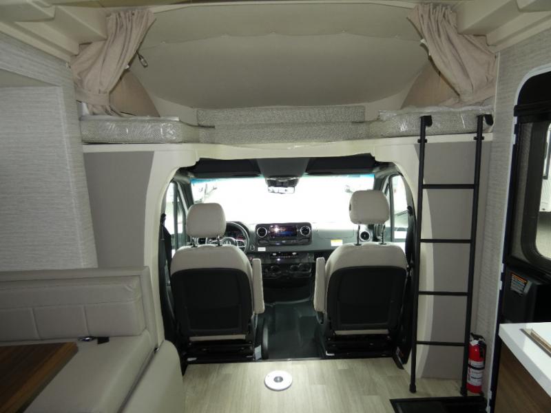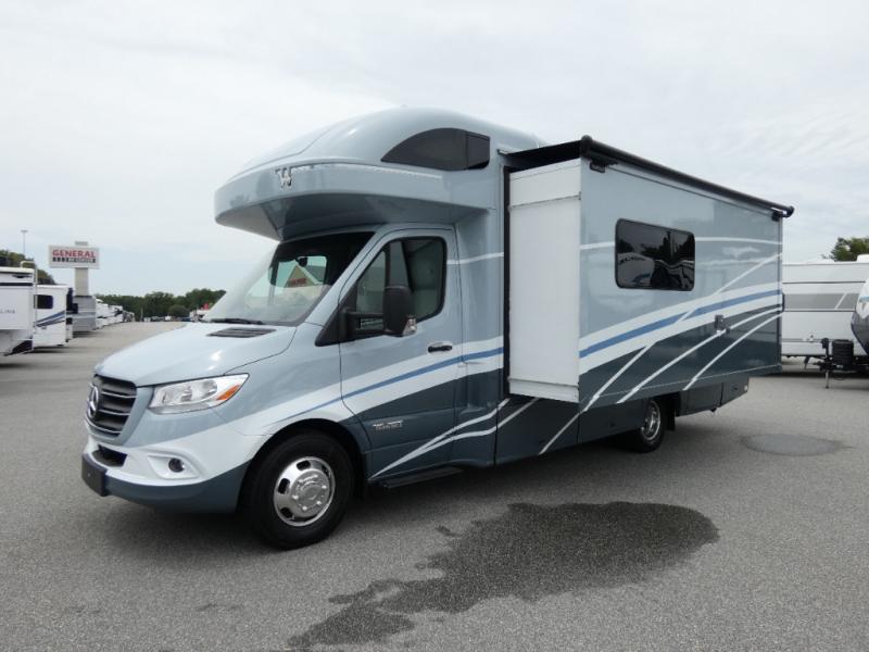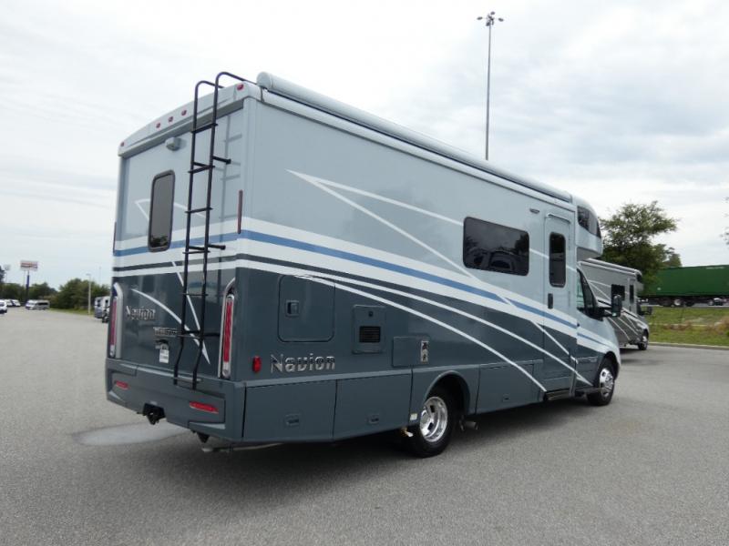 With the Winnebago Navion Class C diesel motorhome, campsite setup is made easier with a powered patio awning with LED lights and Bluetooth control that you can control with a smartphone app, a slide out that is easily moved outward with a push of a button, and your sleeping accommodations are flexible with your activities. The Mercedes-Benz RWD Sprinter chassis, turbo-diesel engine, Adaptive ESP technology, and hydraulic brakes with ABS, are a few reasons you will love driving this coach anywhere, plus all the cab conveniences. The interior offers laminate countertops and vinyl flooring throughout for easy care, cabinets with accent lighting, toe kick lighting to help when your hands are full, and charging stations for your electronics. You will stay powered up with two 100-watt solar panels, a generator, a 2,000-watt pure sine wave inverter, plus more features included with the electrical system.