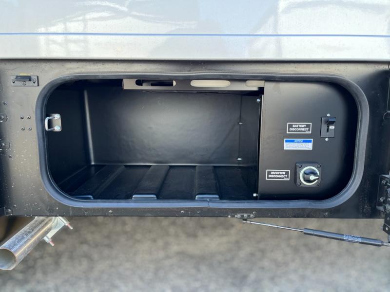 The Winnebago Navion 24T Class C diesel motorhome is functional, innovative, and stylish! You can rule the interstate with the Mercedes-Benz RWD Sprinter chassis, or choose the optional Mercedes-Benz AWD Sprinter chassis to tackle tougher terrain. A Lithium Power Package comes with a 320-amp-hour lithium battery and a dedicated second alternator that will allow you to charge the batteries faster while you're on the road. There are also two 120-watt solar panels to keep you going when you're off-grid. Since there is a heated gear garage with L-track cargo tie-downs, you can bring along two full-size bikes and additional gear for hiking, plus there are 110V/12V charging ports and LED lighting here for added convenience. The contemporary interior features blackout roller shades for the lounge and dining area, woven vinyl flooring throughout, and dimmable LED lighting. There is also a Winnebago Connect that is integrated into your Winnebago app that acts as your RV companion. Now you can stay informed on vehicle system alerts, travel prep resources, energy management, and more!