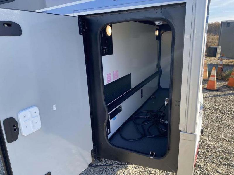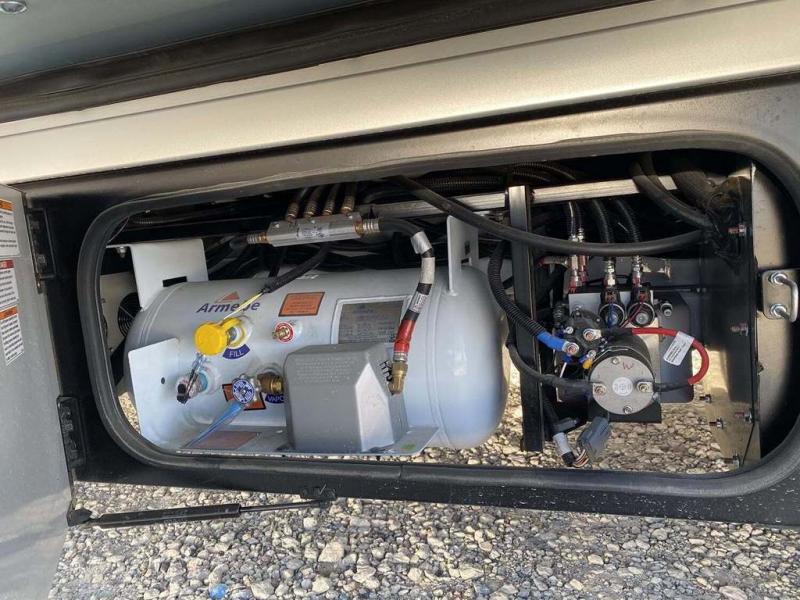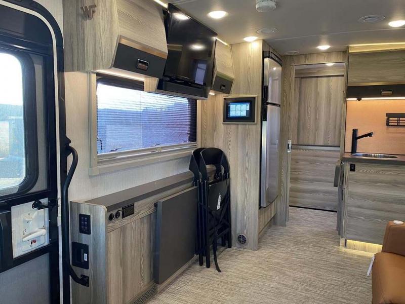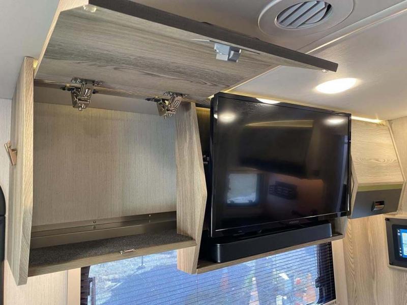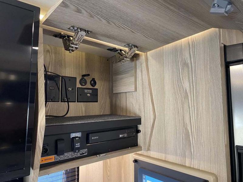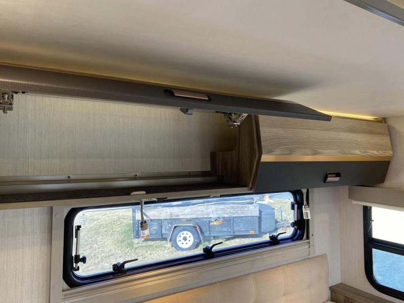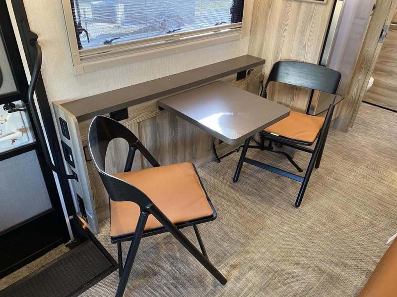 The perfect couples coach or for a family of three or four! This versatile Murphy bed unit will offer you sleeping space when you need it, then a comfortable living area during the day with plenty of seating all while keeping your same coach length. You will be able to easily set up the queen Murphy+ bed when it's time for bedtime while the kids or your guests sleep on the 49" x 75" cabover bunk. You can also choose the optional low profile front cap with storage if you do not need the added sleeping space. Everyone can get cleaned up in the full bathroom that has a space-saving sliding door and large bath wardrobe along the very rear that features a gear garage below. Create yummy meals and snacks using the kitchen appliances and the flip-up counter, then dine at the fold-down table with chairs, or eat seated on the theater seating with lap tables nearby on either side. An optional 3800W RVMP LP generator is also available with this model.