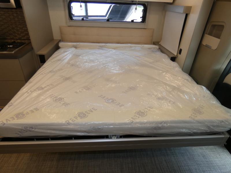 The Winnebago Navion 24T and 24R Class C diesel motorhomes are functional, innovative, and stylish! You can rule the interstate with the Mercedes-Benz RWD Sprinter chassis. A Lithium Power Package comes with a 320-amp-hour lithium battery and a dedicated second alternator that will allow you to charge the batteries faster while you're on the road. There are also two 120-watt solar panels to keep you going when you're off-grid. Since there is a heated gear garage with L-track cargo tie-downs, you can bring along two full-size bikes and additional gear for hiking, plus there are 110V/12V charging ports and LED lighting here for added convenience. The contemporary interior features blackout roller shades for the lounge and dining area, woven vinyl flooring throughout, and dimmable LED lighting. There is also a Winnebago Connect that is integrated into your Winnebago app that acts as your RV companion. Now you can stay informed on vehicle system alerts, travel prep resources, energy management, and more!