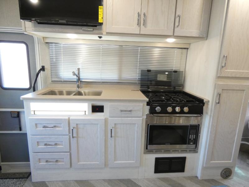 You and your family will love the convenience of traveling in this Porto Class C diesel motorhome and there is room to sleep four. The kids or your guests can sleep on the 49" x 87" cabover bed or the booth dinette once converted, and you will enjoy the RV queen bed. The full-wall slide will provide the chef space to cook meals, while the kids play a game on the floor. The full bath includes a space-saving sliding bi-fold door, a convenient medicine cabinet, plus a shower skylight to allow natural light in. You can spend your evenings inside watching a show on the 32" Smart LED HDTV, or if the weather is nice you can sit outside under the 15' power awning with LED lights! This model also includes plenty of storage space including a pantry and wardrobe, plus exterior storage for your tackle box or outdoor gear!