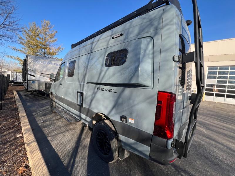 The Revel Class B diesel motorhome allows you to venture off-road thanks to the AWD Sprinter chassis with 2.0L high-output turbo-diesel 4-cylinder under the hood. The Winnebago Power MAX system (8.4kWh Lithionics lithium-ion battery with dual alternator charging capability) and Power Hub Pro which is an exclusive 5-in1 system that delivers off-grid power like nothing before allowing you to stay off-grid for up to 7 days . The interior provides a comfortable and relaxing space featuring modern decor including an updated galley with compression-latch cabinets, a new wall-mounted table, a semi-private wet bath, plus a power lift bed with WinnSleep® mattress technology, and the gear garage below the bed features (6) L-track bases for secure and flexible storage, plus cabinet storage and more. For the freedom to explore in any season, start treating roads like suggestions, and choose this Revel to get you anywhere you dream to go today!
