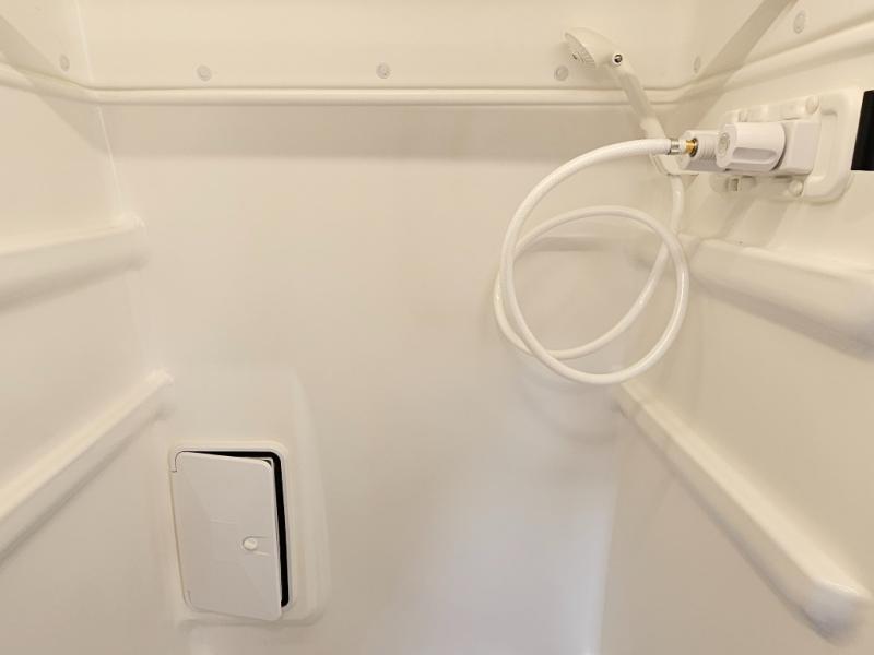 Wet bath with shower, toilet, and sink for easy cleanup on the road