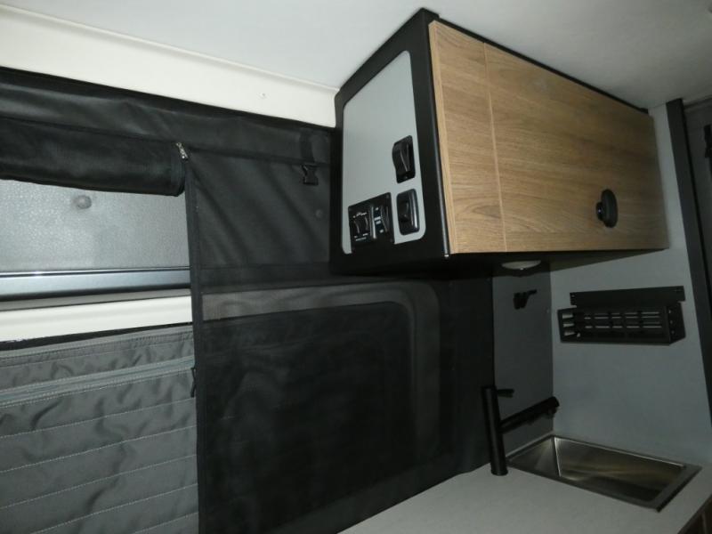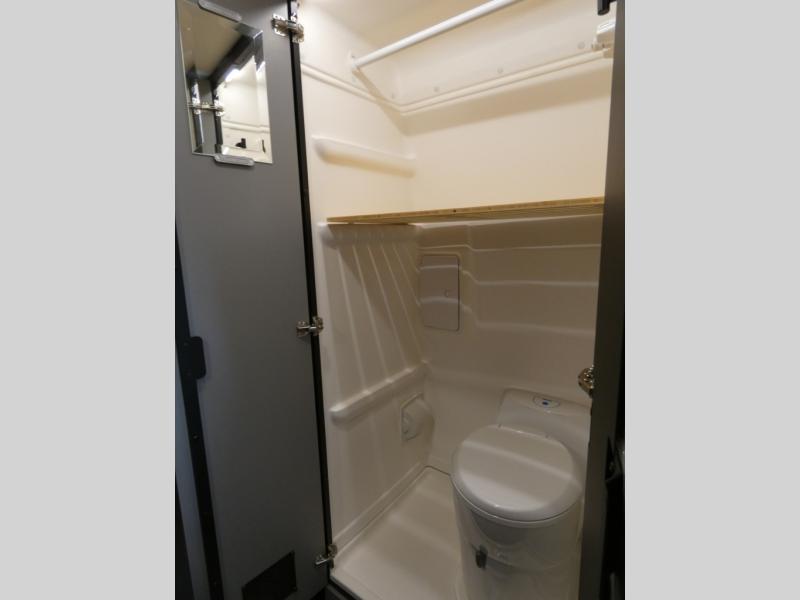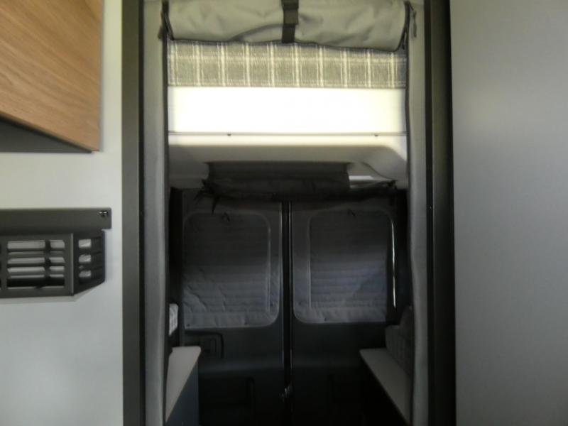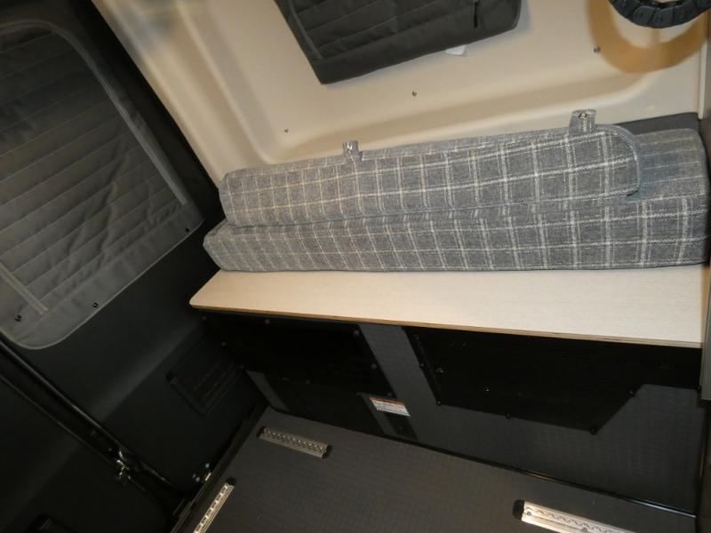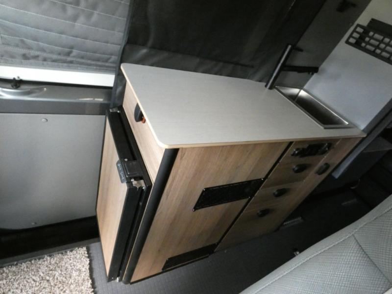 Looking for adventure yet not sure which road you'll take? This camper van offers the outdoor enthusiast a way to venture the unknown. Once at your destination, you can easily set up the interior including a power lift bed in the rear. The cab seats swivel around and there is a bench seat with adjustable table for easy dining opposite. There is even a fold-down outside table to dine outdoors if you want. You will find storage throughout including in the gear garage below the bed where you can store your hiking sticks and backpacks. The cook will have a portable single induction range top, a stainless steel sink, and a counter extension for more prep space plus a refrigerator below the counter. There is also a wet bath to stay clean and refreshed!